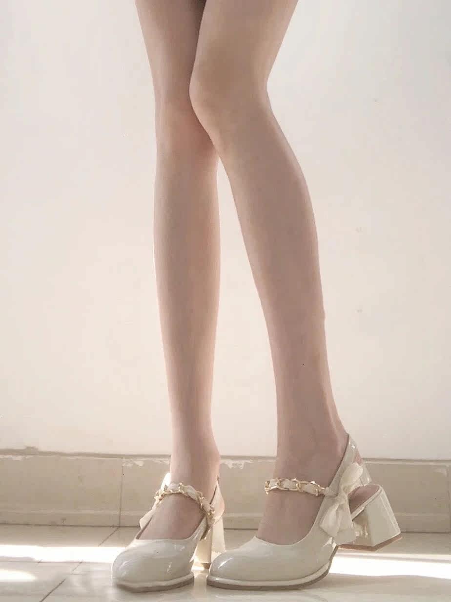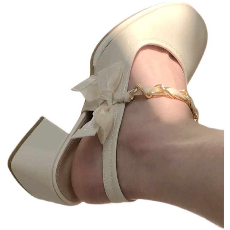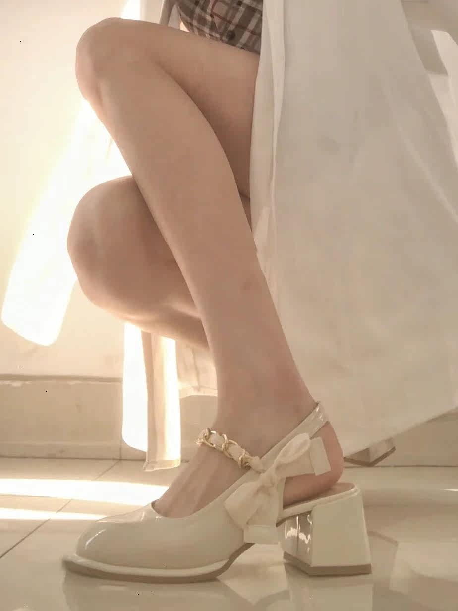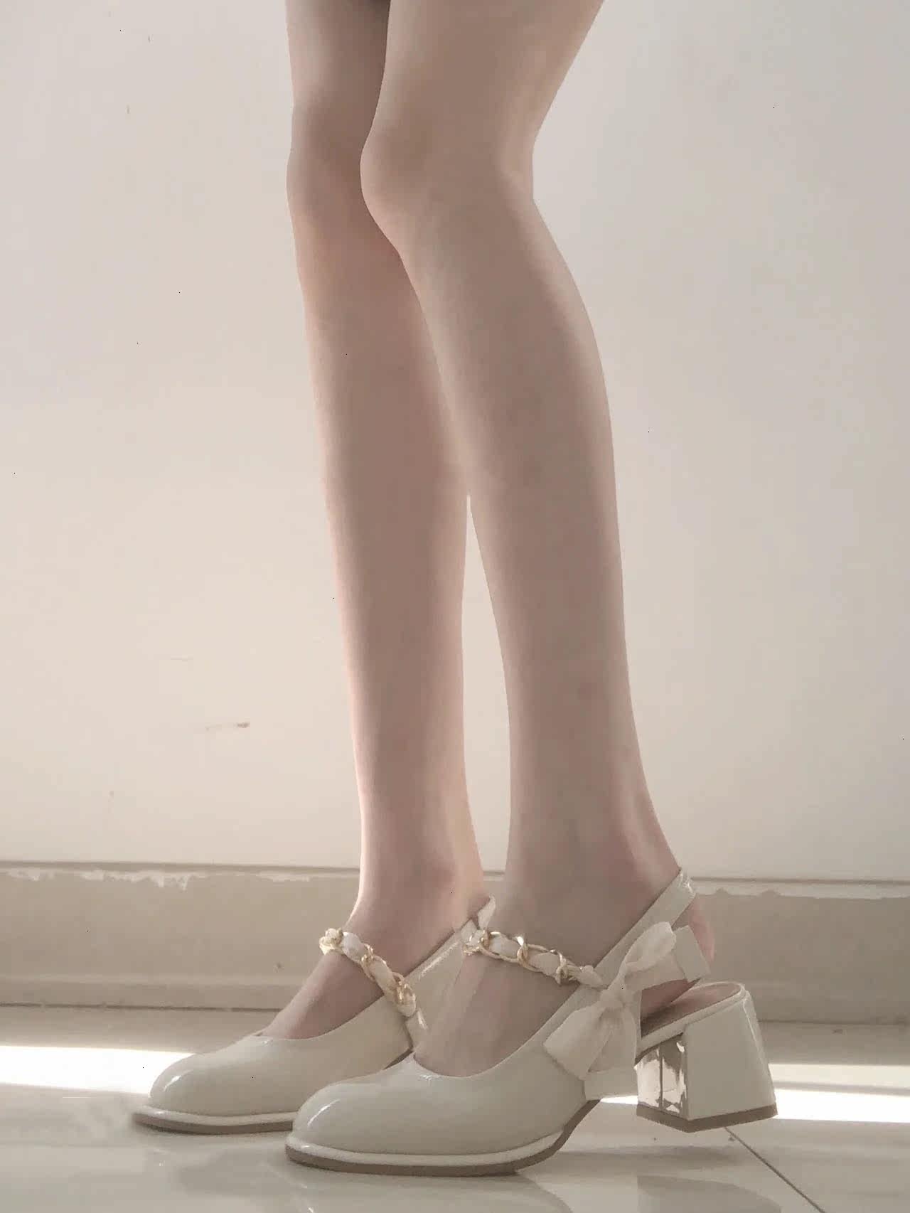 OMG fairy shoes back empty toe sandals white chunky high heels French Mary Jane shoes