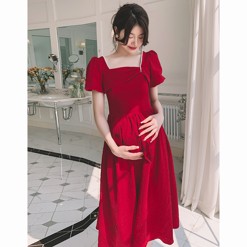 Pregnant women toast dress bride summer wedding engagement back door dress dress woman size fat mm burgundy cover belly