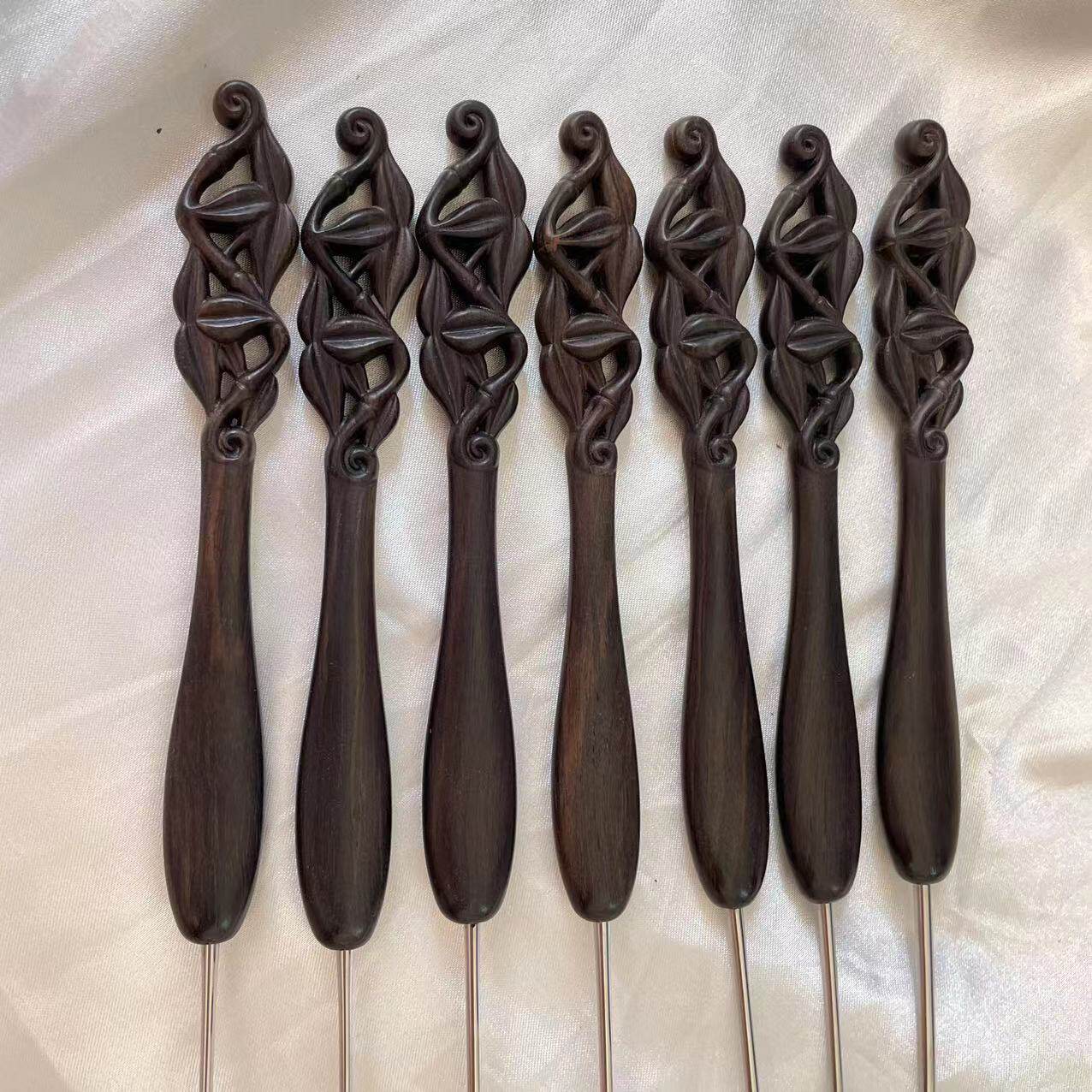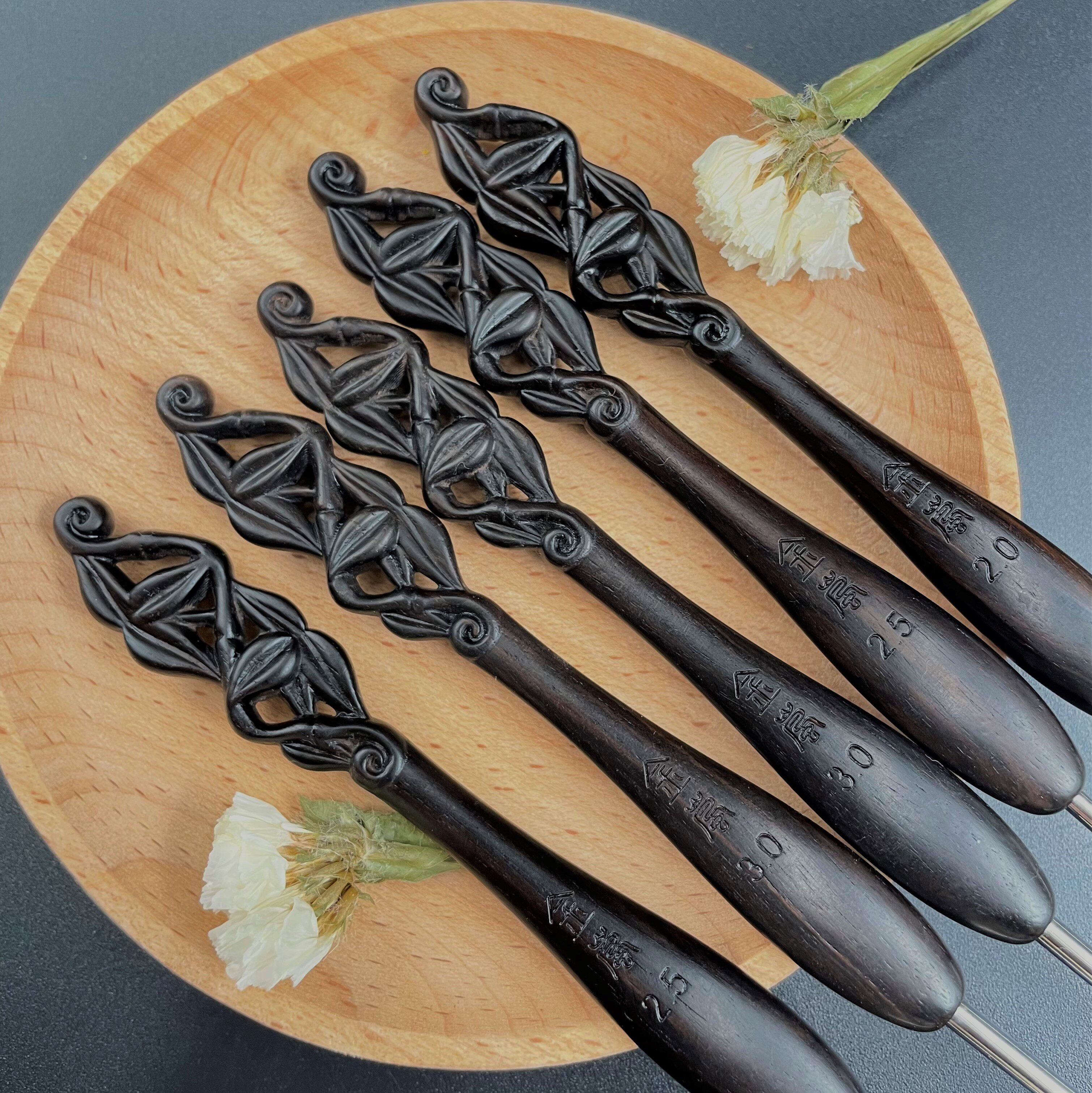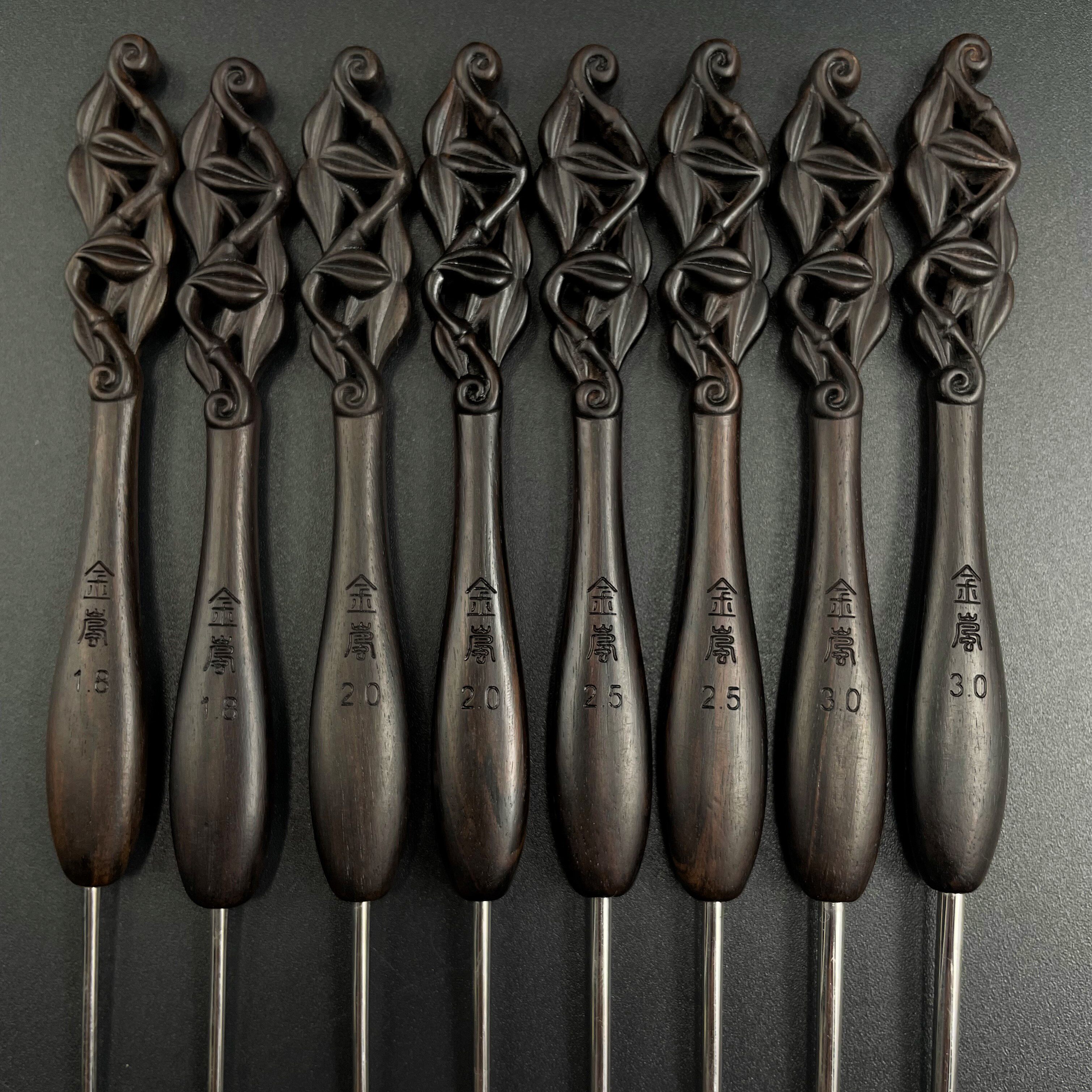 Shanghai brand Jinlan crochet ebony wood handle master needle clear bamboo hand knitting tool