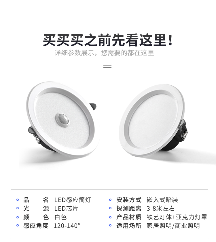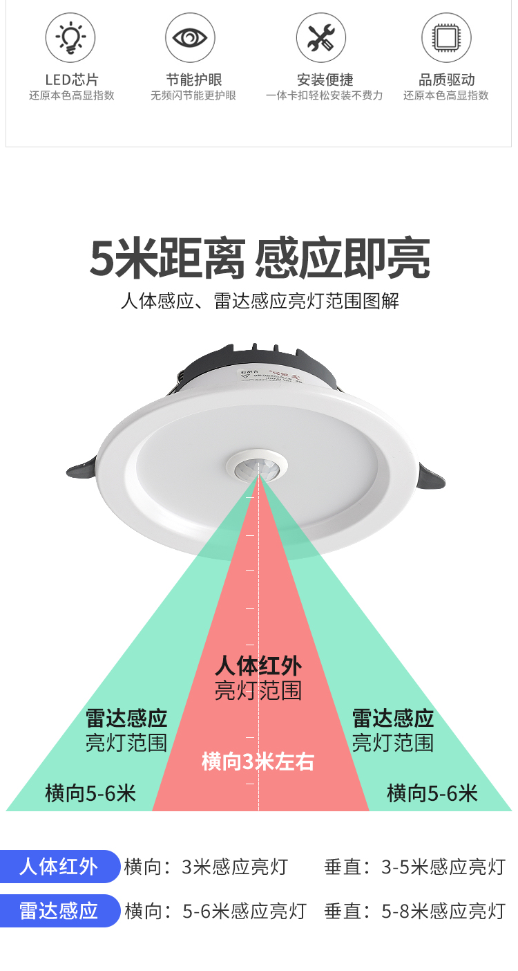 Human body induction model 5 watts white light opening 7 5-8 5cm human body induction model 9 watts white light opening 9-10cm human body induction model 12 watts white light opening 11-12cm human body induction