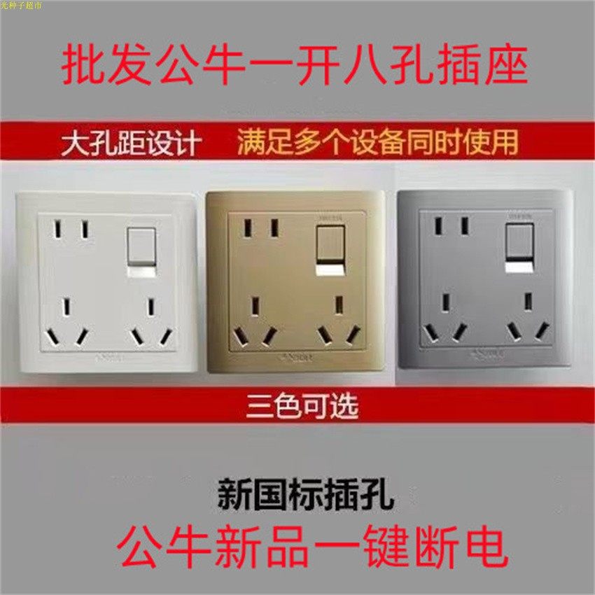 BULL bull one open eight-hole socket with switch 86 type wall 8-hole household concealed porous eight-hole socket