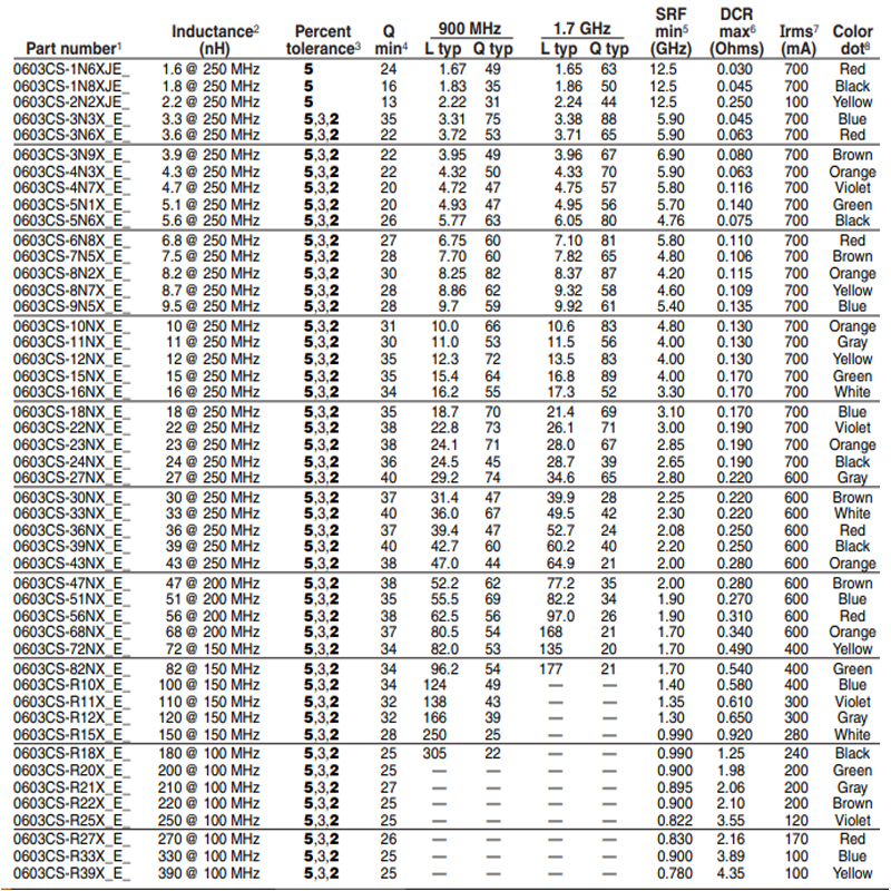 0603CS-1N6XJE 0603 1 6nh0603CS-1N8XJE 0603 1 8nh0603CS-2N2XJ