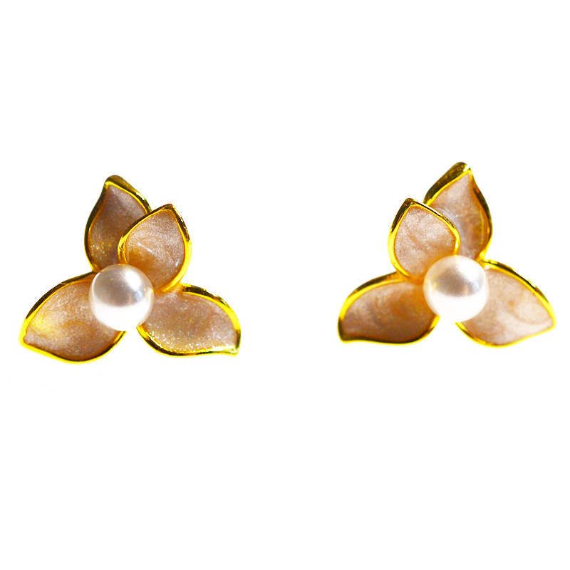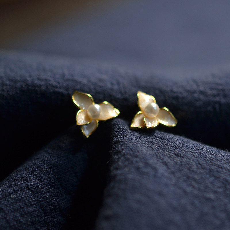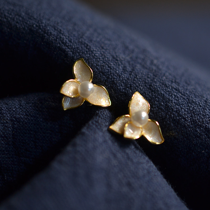 925 Silver silver drop oil light pink flower petal pattern ancient style silver ear nail ear decoration box