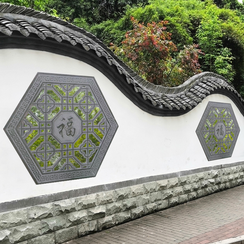Villa Park Exterior Wall Decoration Relief Han White Jade View Wall Painting Antique Green Stone Window Flowers Hollowed-out Wall Earth Sculpture