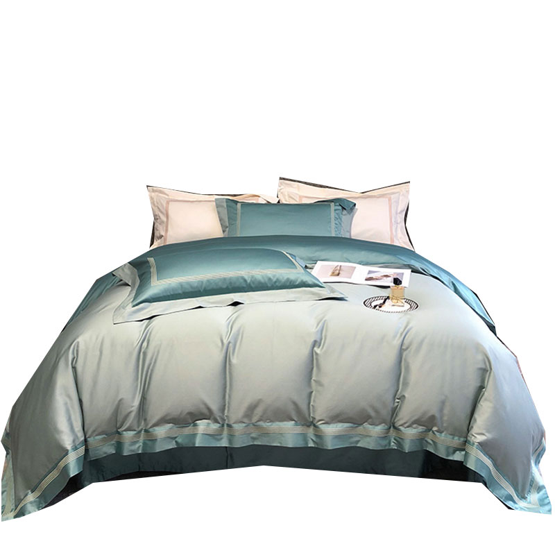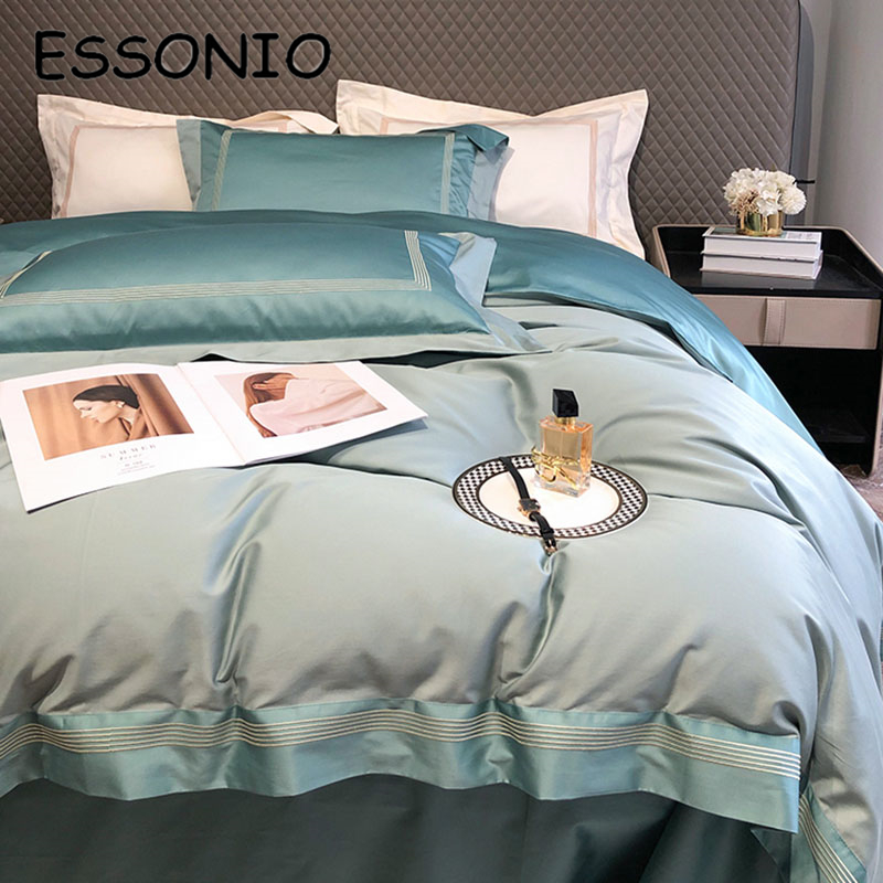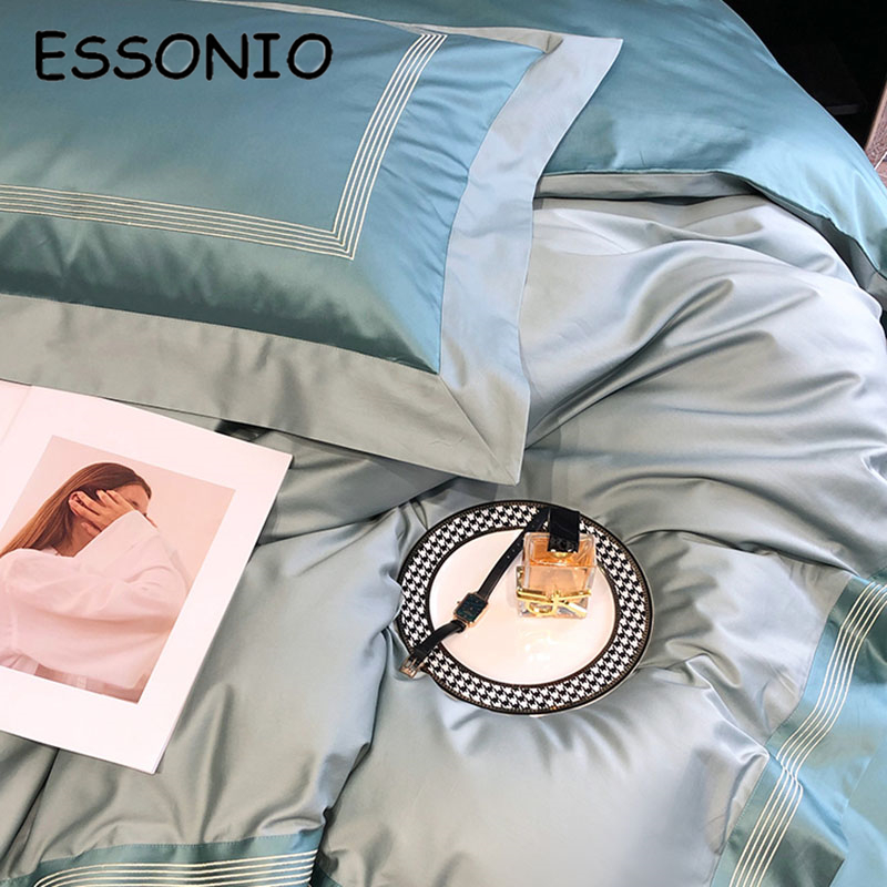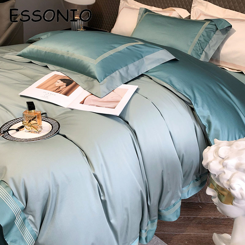ESSONIO Summer Light Luxury Long-chown Cotton Four Pieces of Simple Cotton Bed with Bed