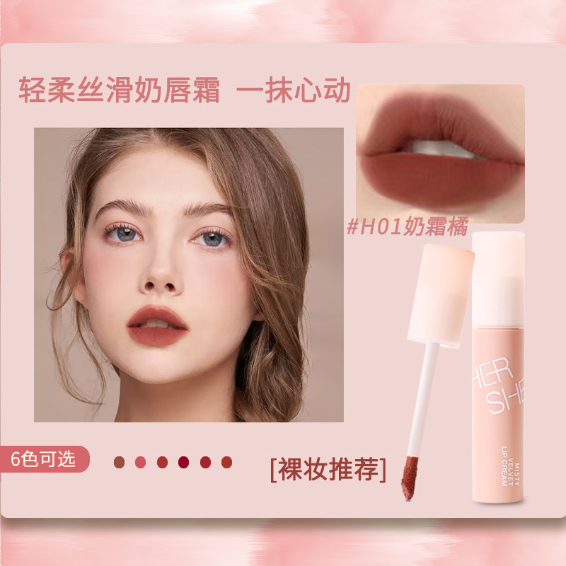 (New color listing) Lip powder cream matte fine flash red brocade lip mud female non-stick cup niche lipstick lip glaze does not fade