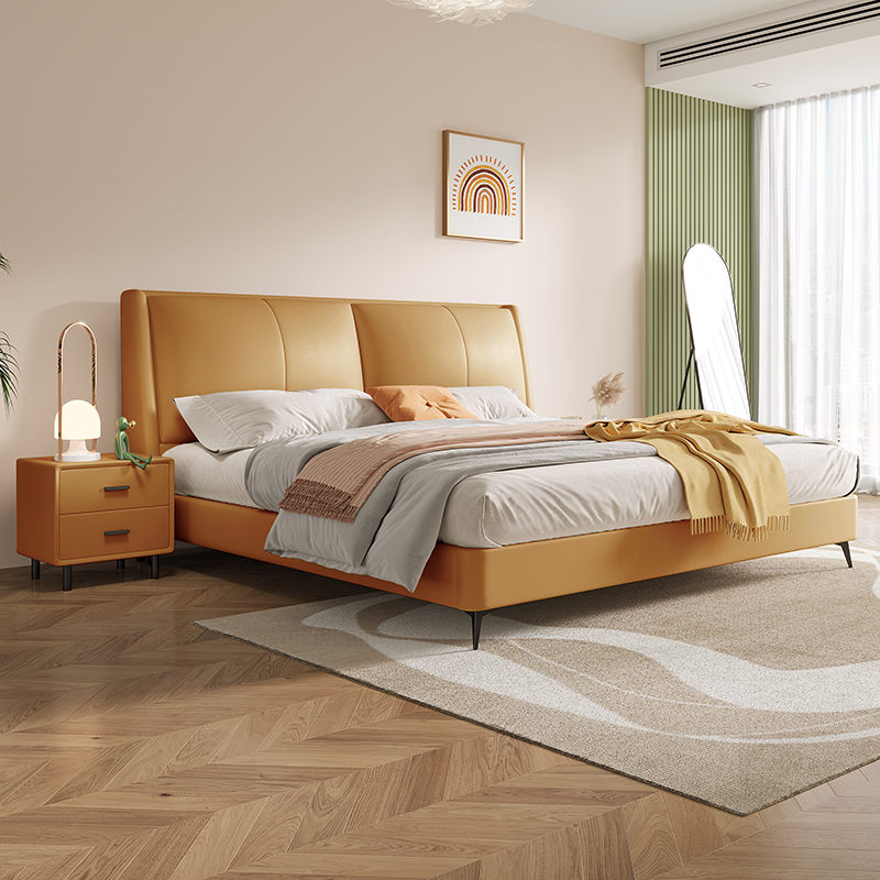 Italian Minimalist Leather Bed Modern Simple Soft Bed Economy Light Luxury Double Bed Master Bedroom Queen Bed Specials Leather Bed