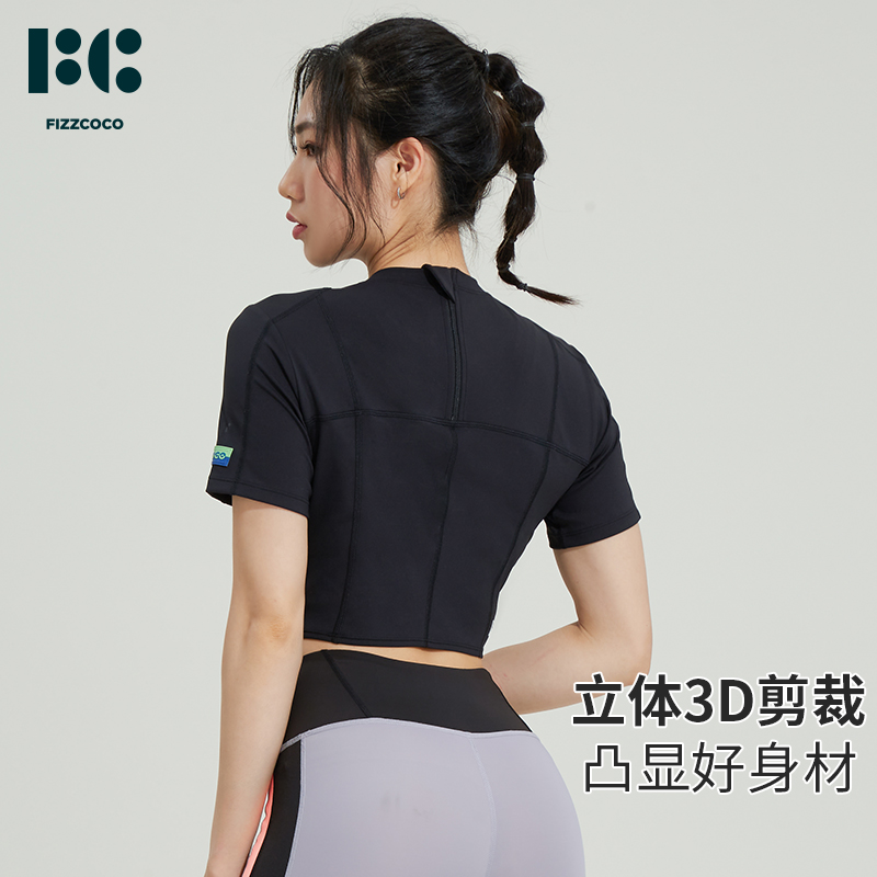 FIZZCOCO Boil Pop series small high - collar sports fitness dress girl skin dry and short - sleeve T - shirt