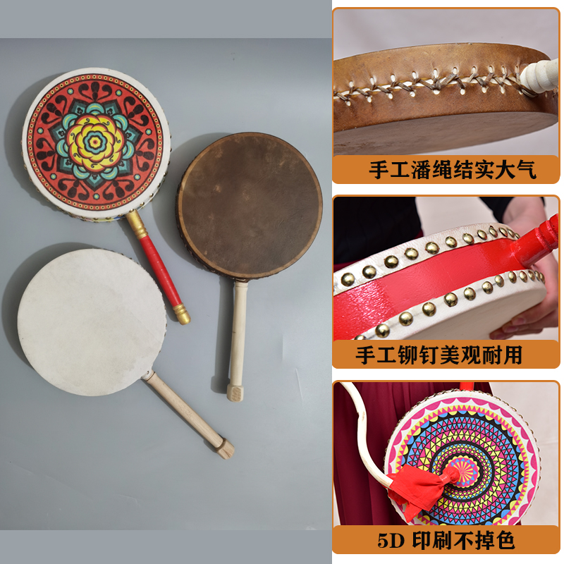 Cow pijeba drum handle inspiring props children adult Tibetan auspicious dance drum arts application