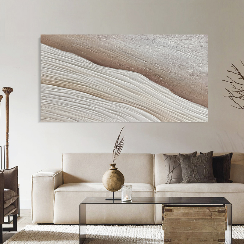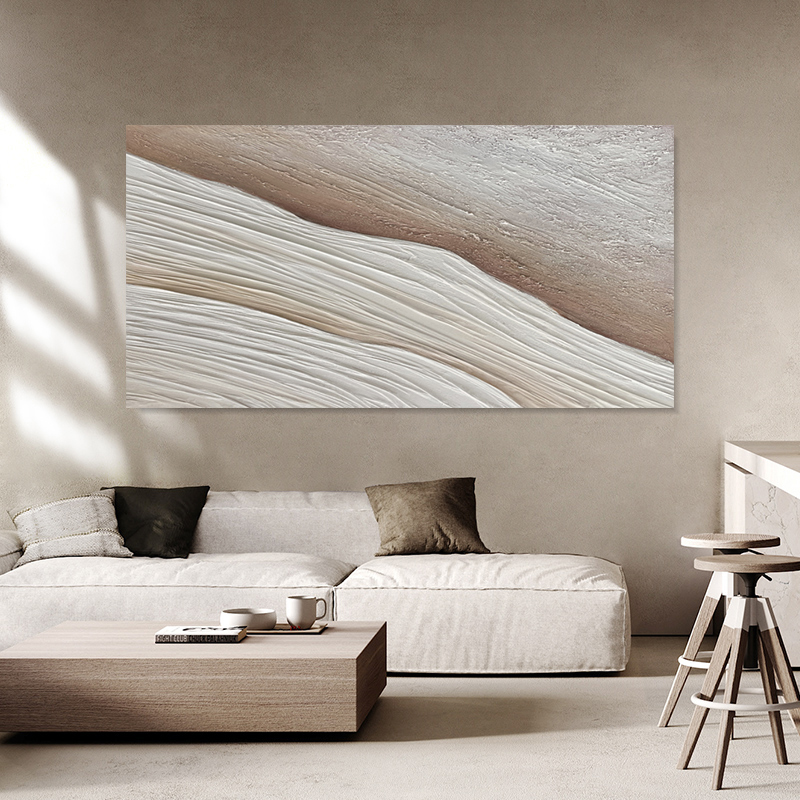 Pure hand-painted oil painting modern minimalist abstract texture three-dimensional large hanging painting living room Wabi-sabi beach wave decorative painting - Taobao
