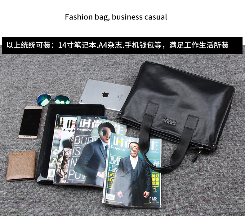 European station new men's bag leather business atmosphere first layer cowhide handbag light luxury fashion large capacity briefcase