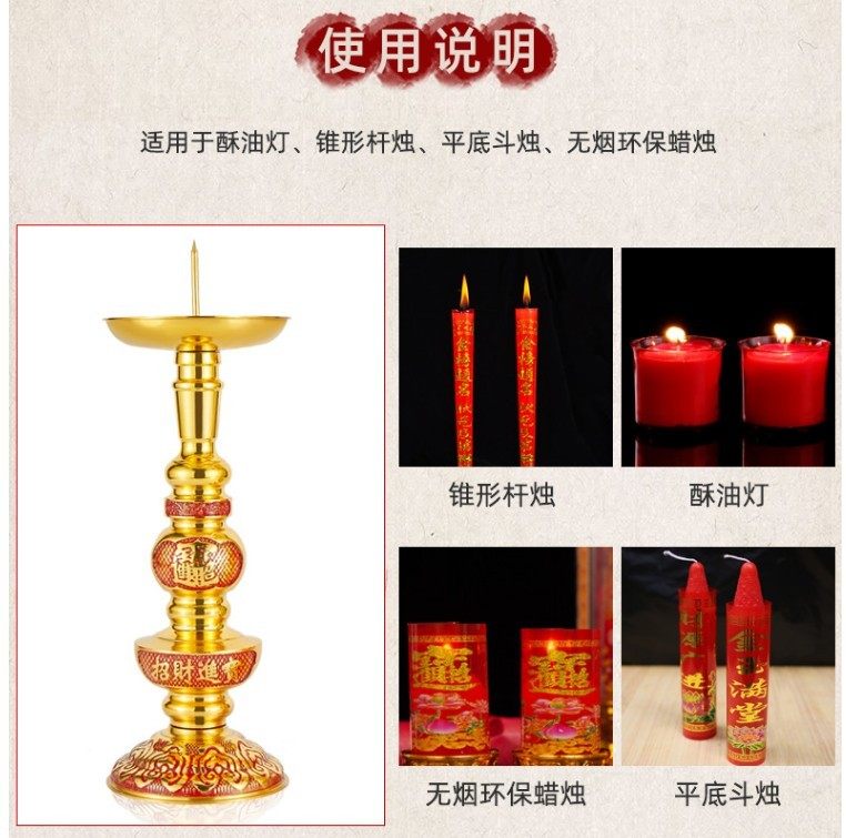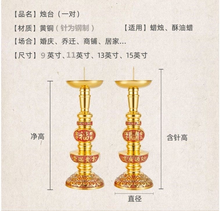 Pure copper candle holder traditional wedding dowry candle holder candle holder Chinese style brass candle holder Fuxi housewarming home fortune
