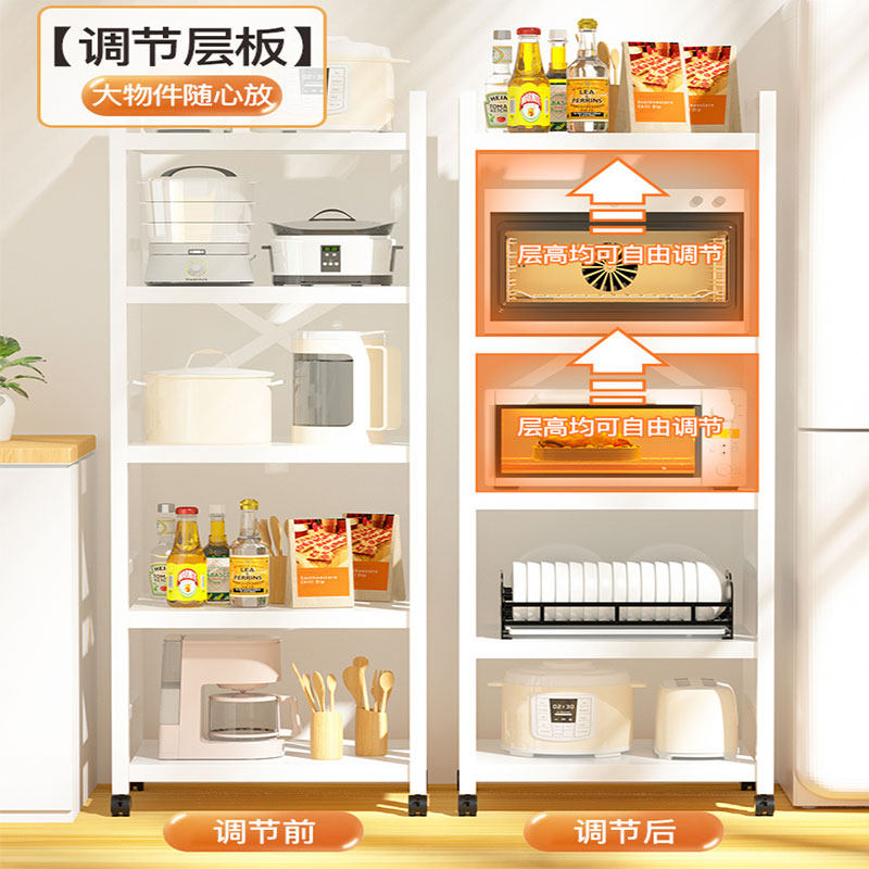 White kitchen rack multi-layer floor-to-ceiling storage pan shelf adjustable oven microwave storage rack