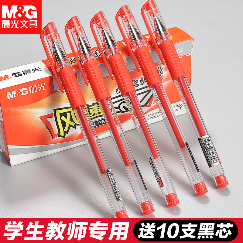 Chenguang red pen student teacher special correction homework red neutral pen 0 5mm ballpoint pen water pen signature pen teacher straight liquid high-value roller pen water-based pen red refill