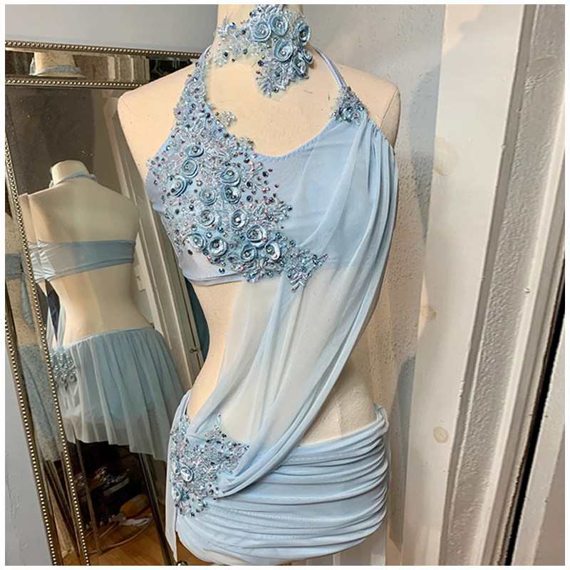 LIUHUO's new female pole dance performance clothing aerial yoga competition clothing acrobatic ring clothing blue BD1451