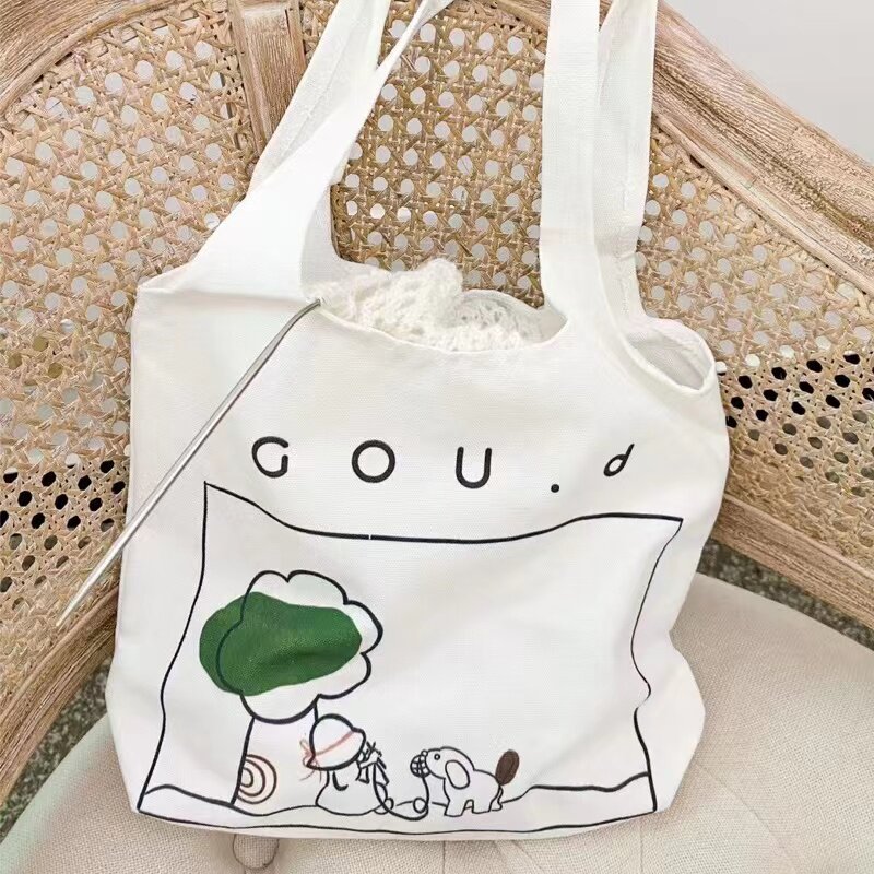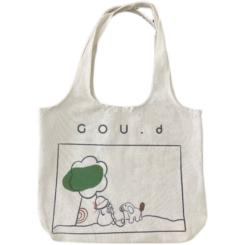 Gou d cartoon print casual canvas bag storage bag large capacity shopping bag out tote bag