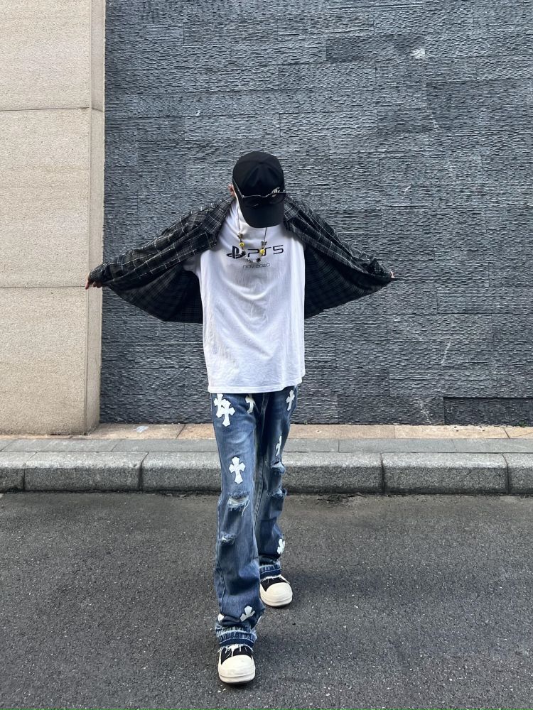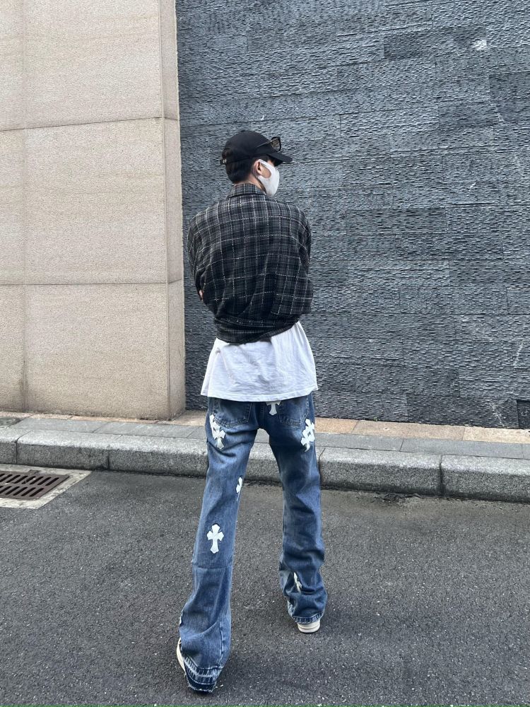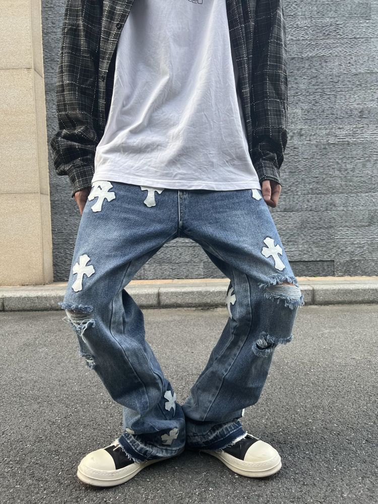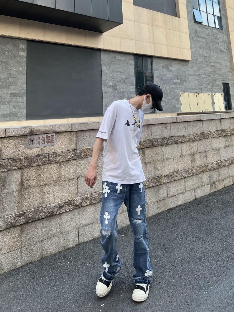 Water Wash Retroit High Street Trumper Jeans Men Vibe Wind Cross Destroy Leisure Men and Women Micro-horn Trouser Tide