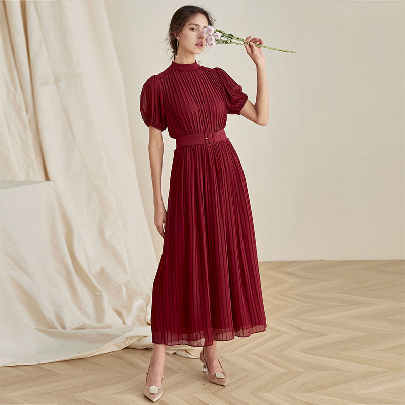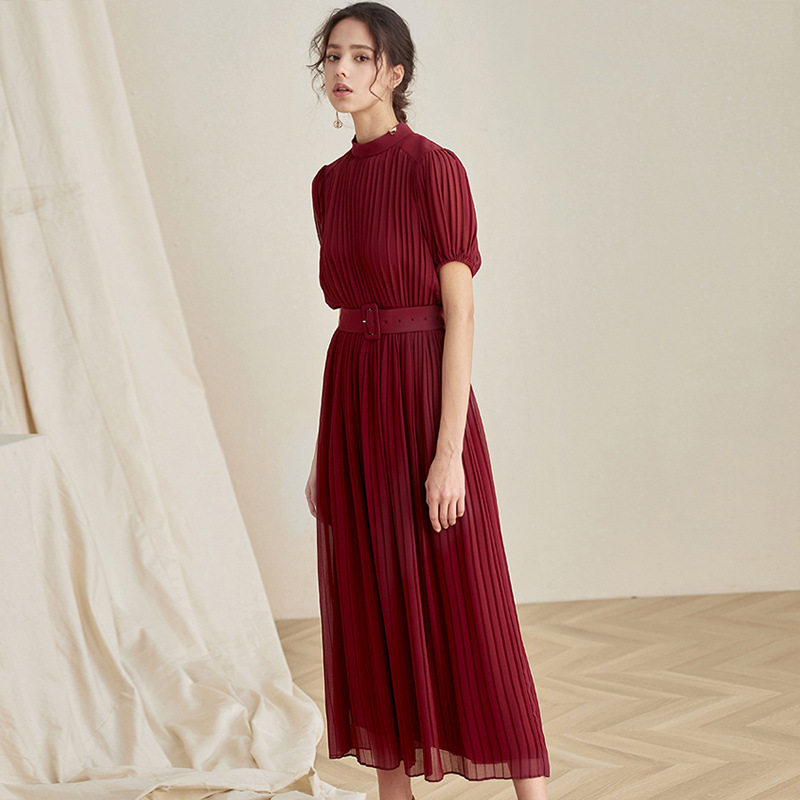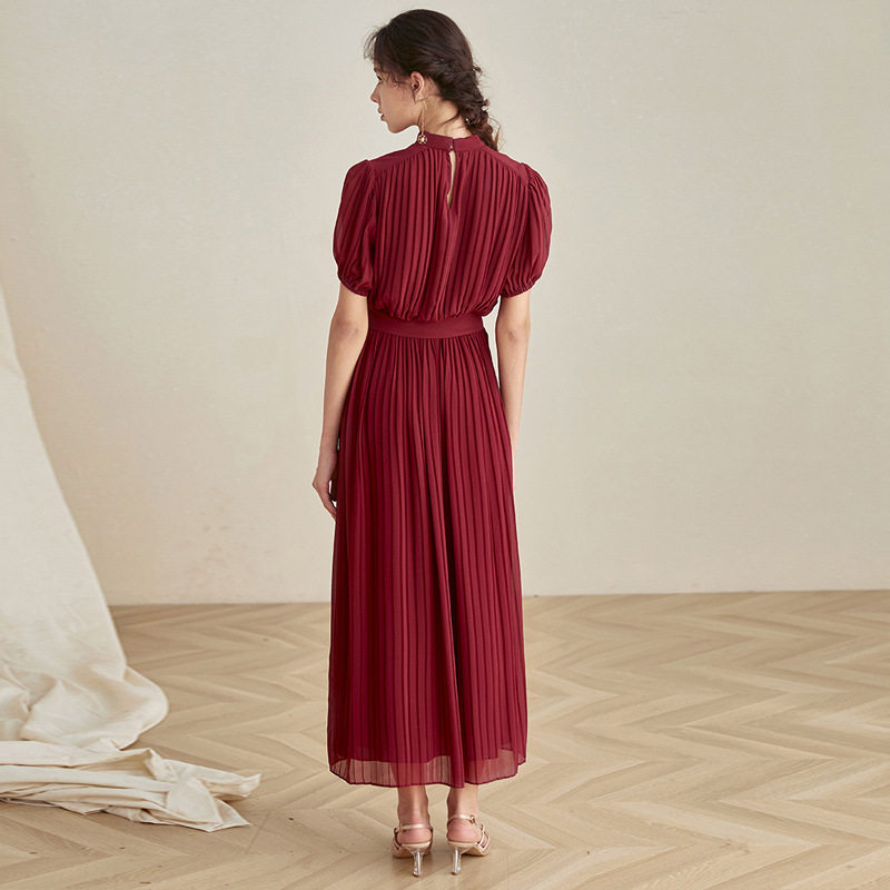 MAJE MANTAS autumn ladies show white wine red elegant dress with temperament slim chiffon dress