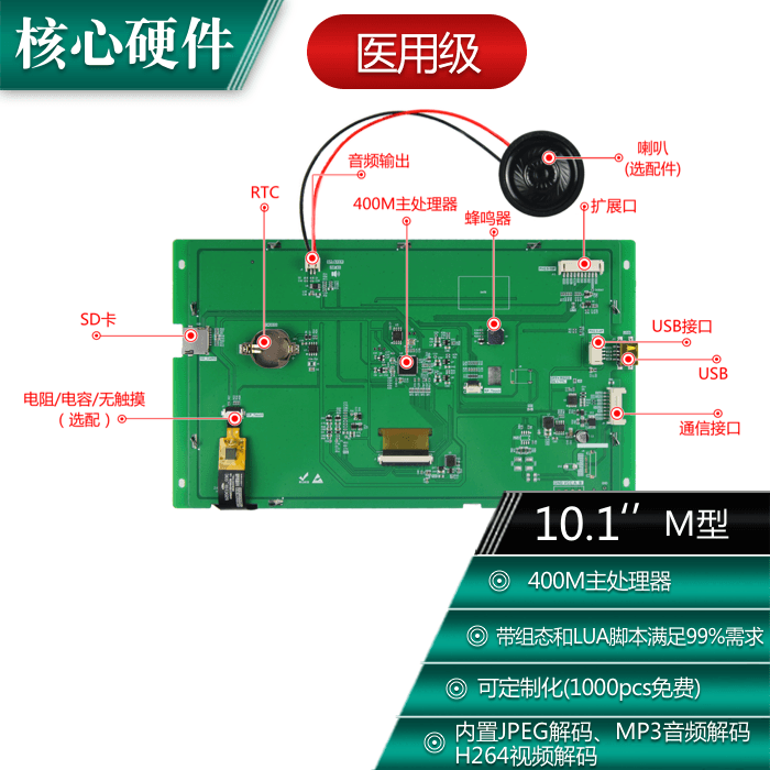 10 1 inch 1024*600 dual serial port, extended IO port, U disk, medical grade capacitive screen, Guangzhou Dacai