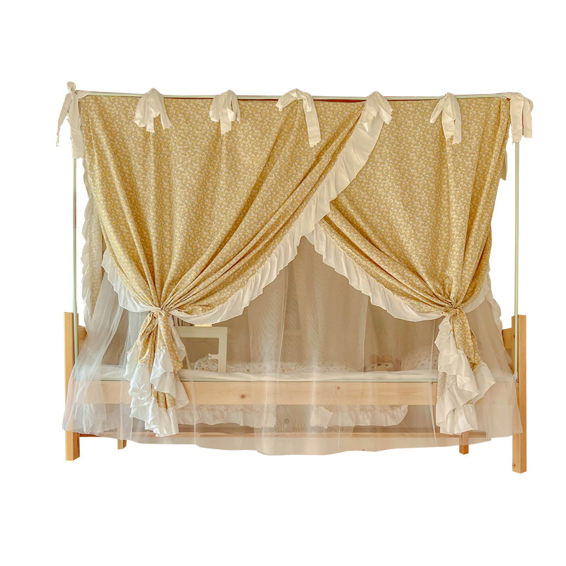 Rope-tied single-layer bed curtain-solid color powder rope-tied single-layer bed curtain-solid yellow rope-tied single-layer bed curtain-solid blue blue-tied rope single-layer bed curtain-broken pollen rope-tied single-layer bed curtain-broken flower yellow