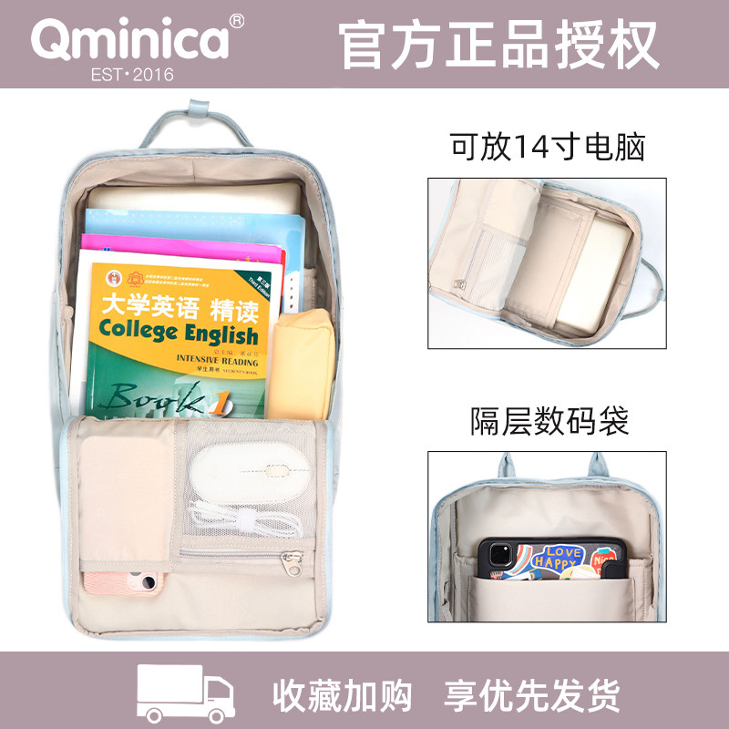 Qminica backpack women's schoolbag 2022 new college students junior high school students high school students all-match ins computer backpack