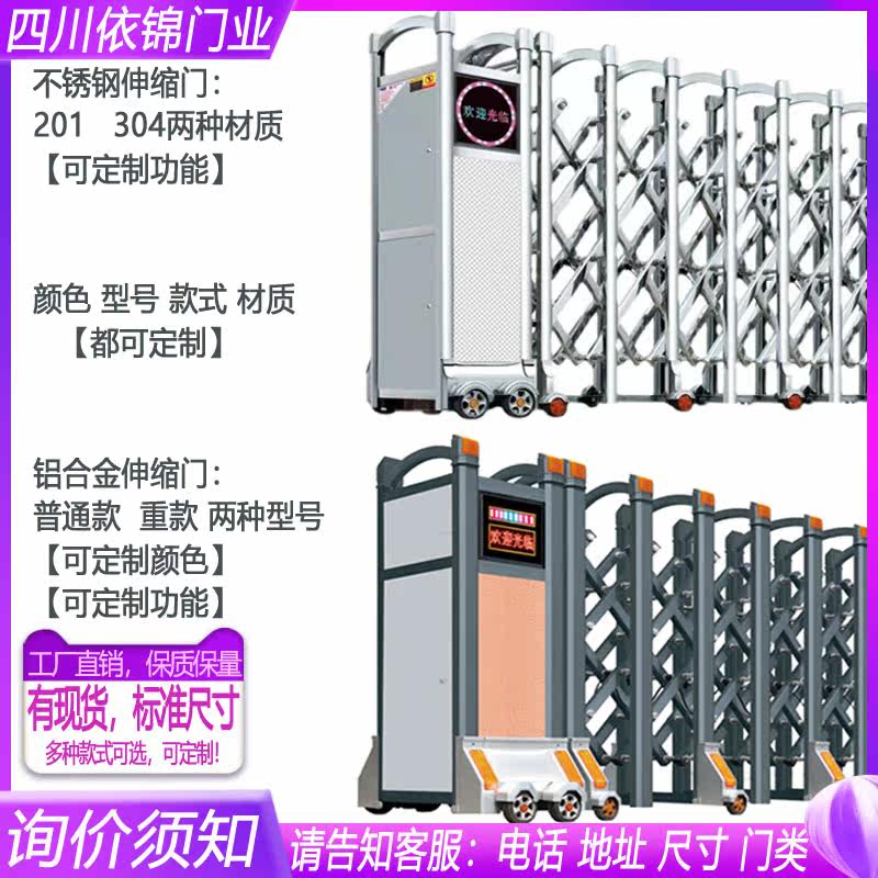 Aluminum alloy telescopic door Ordinary aluminum alloy telescopic door Heavy-duty stainless steel telescopic door 201 material stainless steel telescopic door 304 material