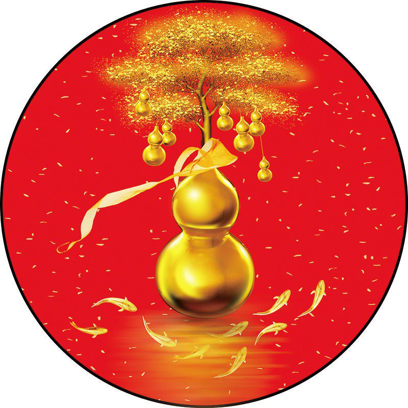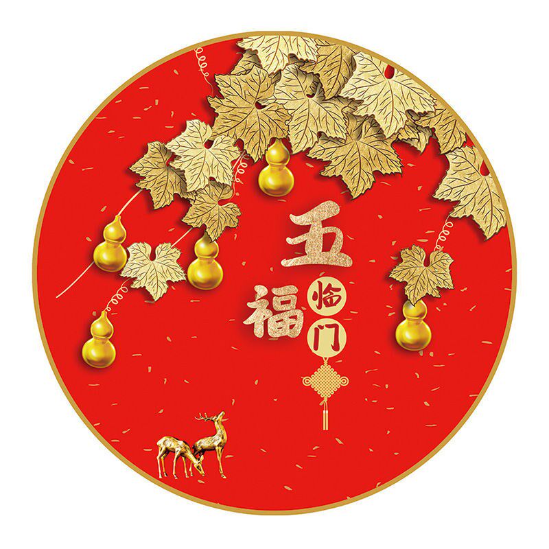 New Chinese style five fu hoist decoration drawing room porch aisle self-stick wall murals New Year round pattern