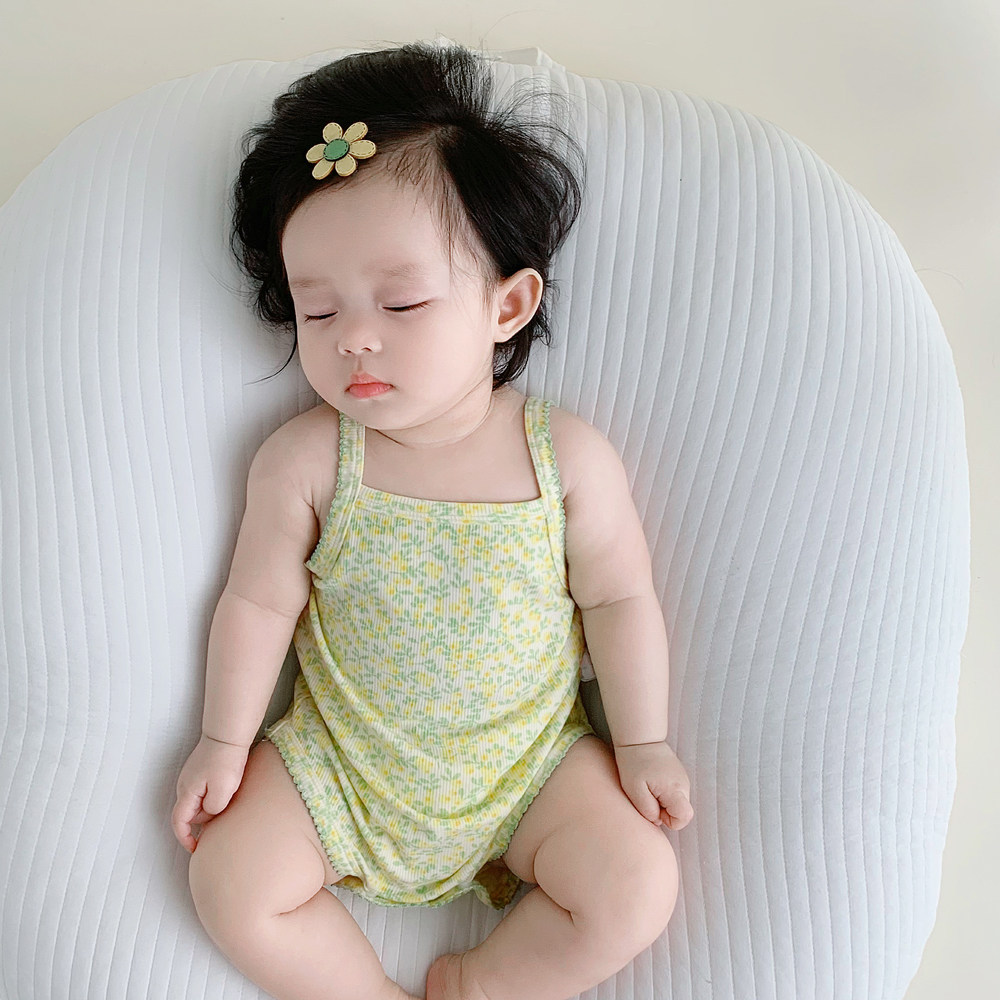 Baby girl summer dress with sling bag fart clothes super cute cute ice silk floral triangle vest romper pajamas baby clothes
