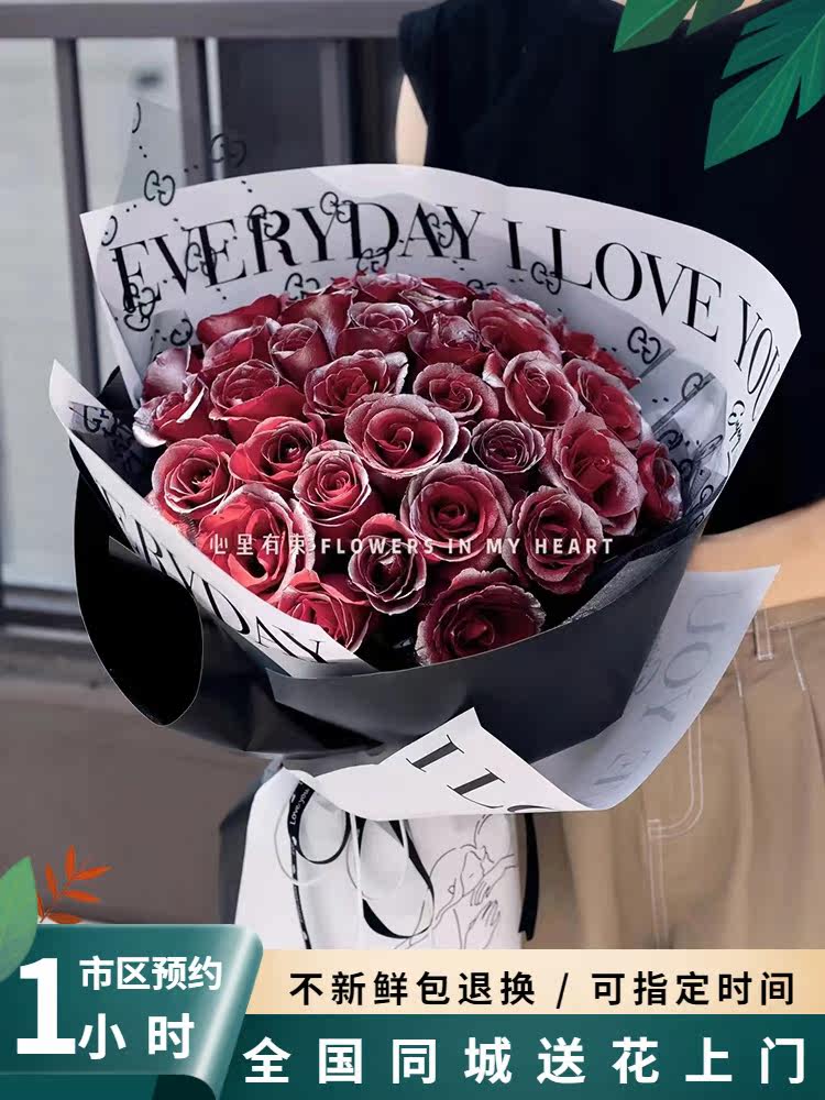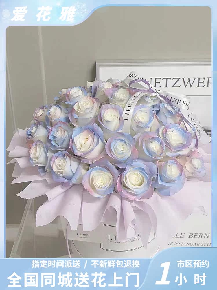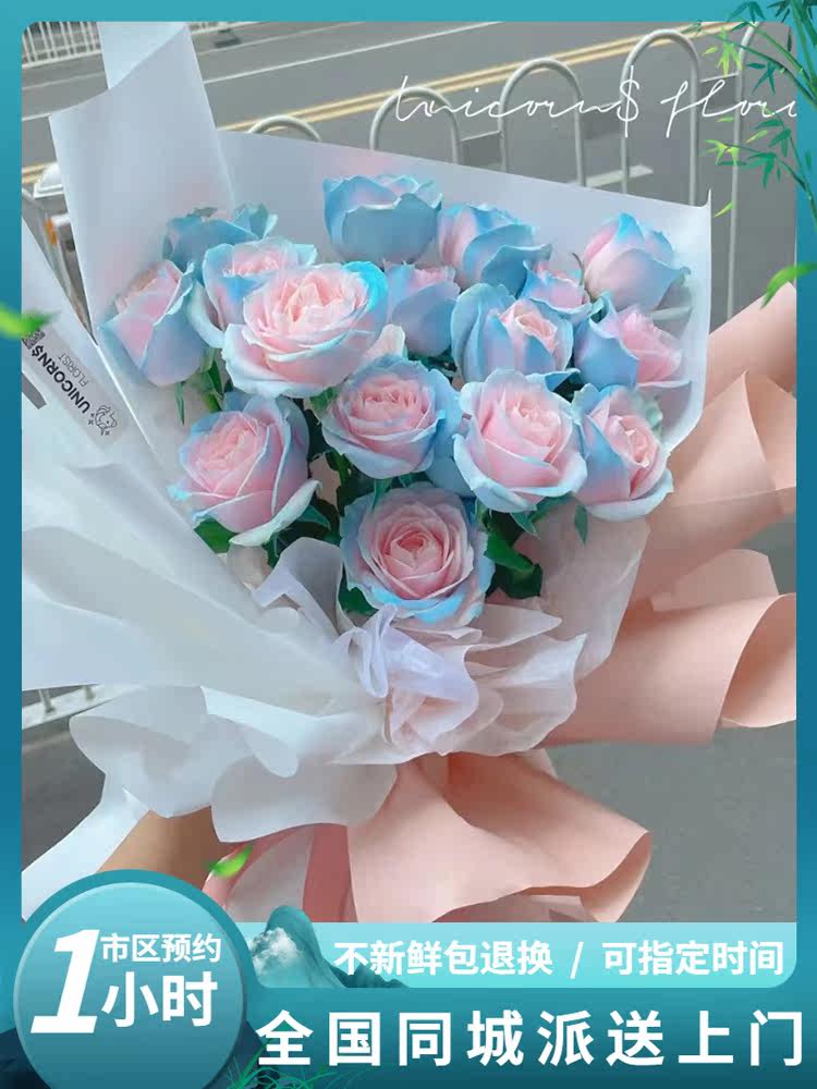 Guangzhou, Shenzhen, Beijing, Shanghai, Chongqing flower delivery within the same city crushed ice blue Isabella pink rose flower bouquet