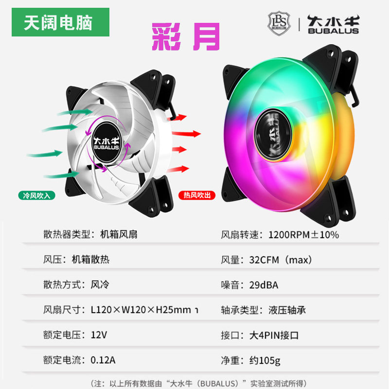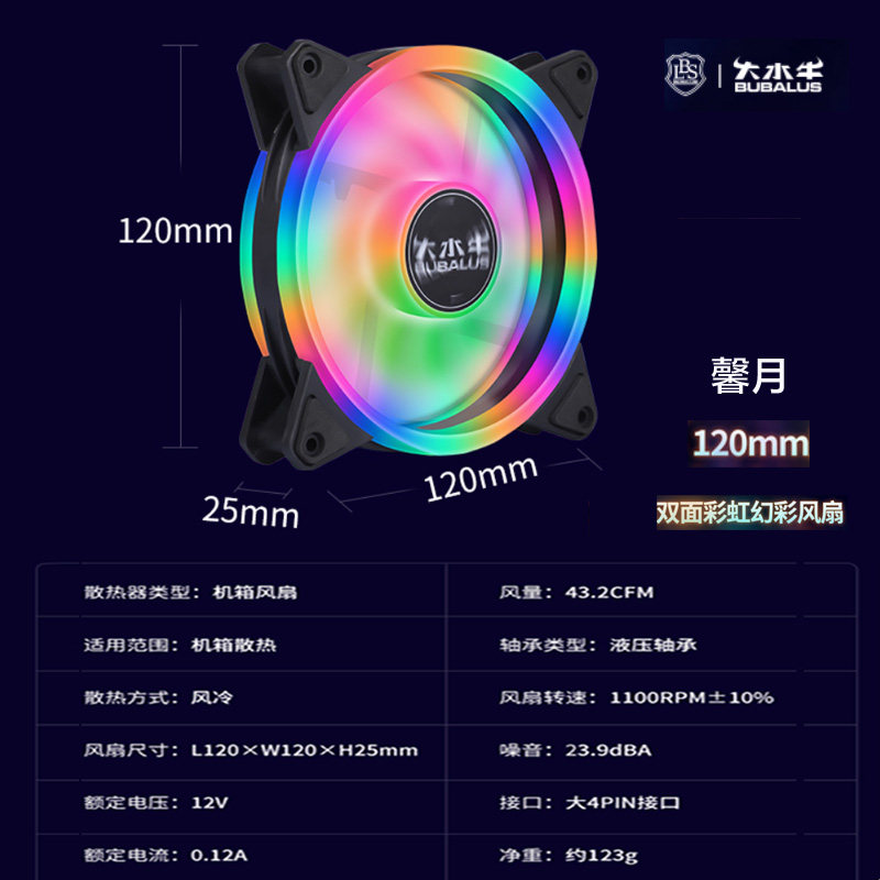 Big buffalo BF120L black mute main chassis fan water-cooled radiator universal PWM12cm large 4P can be connected in series