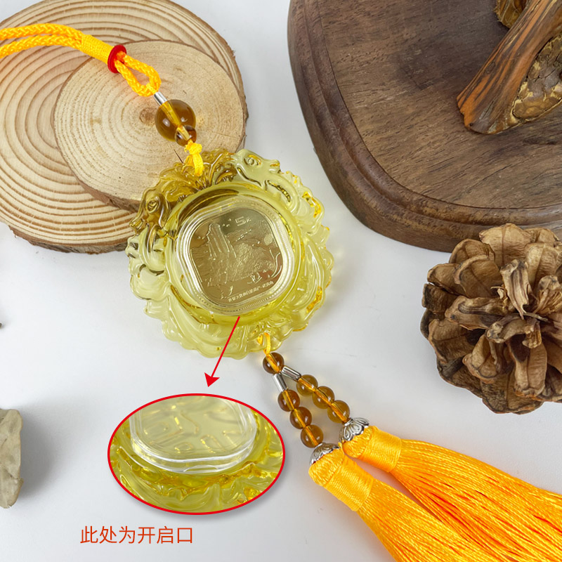 Huangshan Mount Emei commemorative coin collection box yellow tassel car pendant Taishan Wuyishan coin box coin protection box