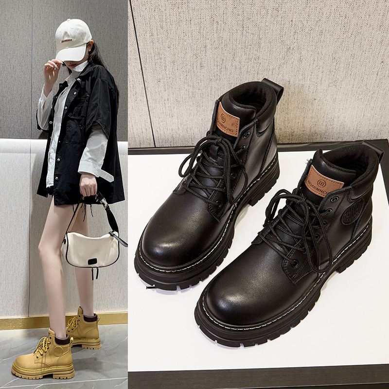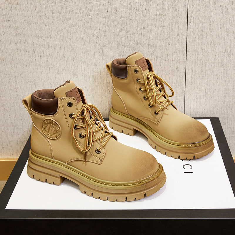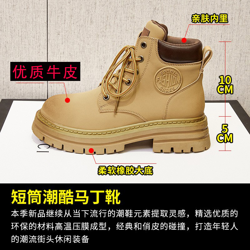 Explosive street leather big yellow Martin boots women's thick bottom British style short boots summer breathable net red hiking boots