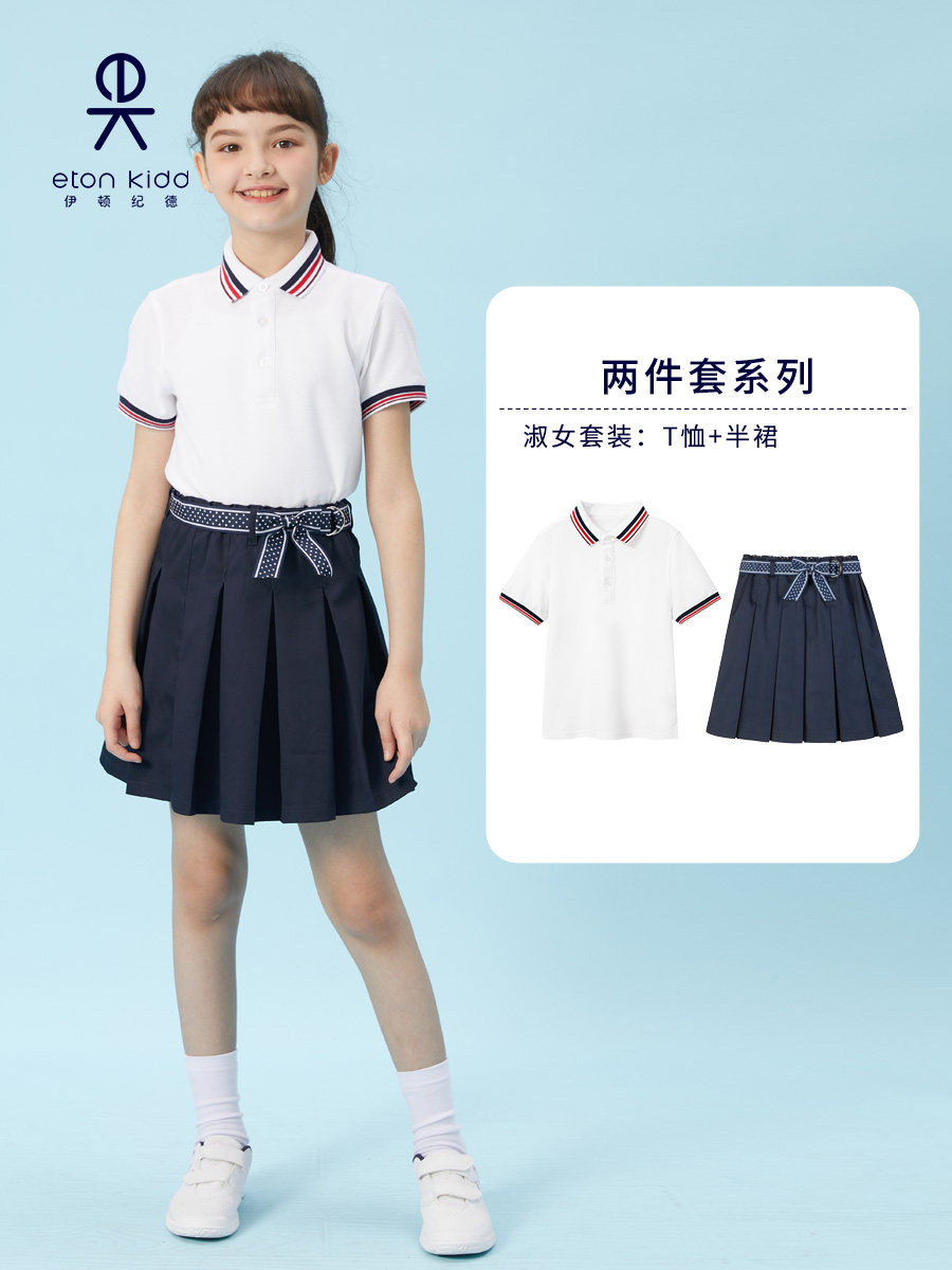 Eaton Gide elementary school uniform boys and girls white pearl net short - sleeve T - shirt hide short shorts