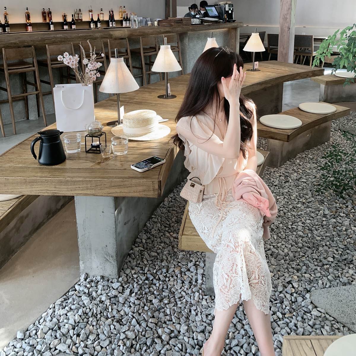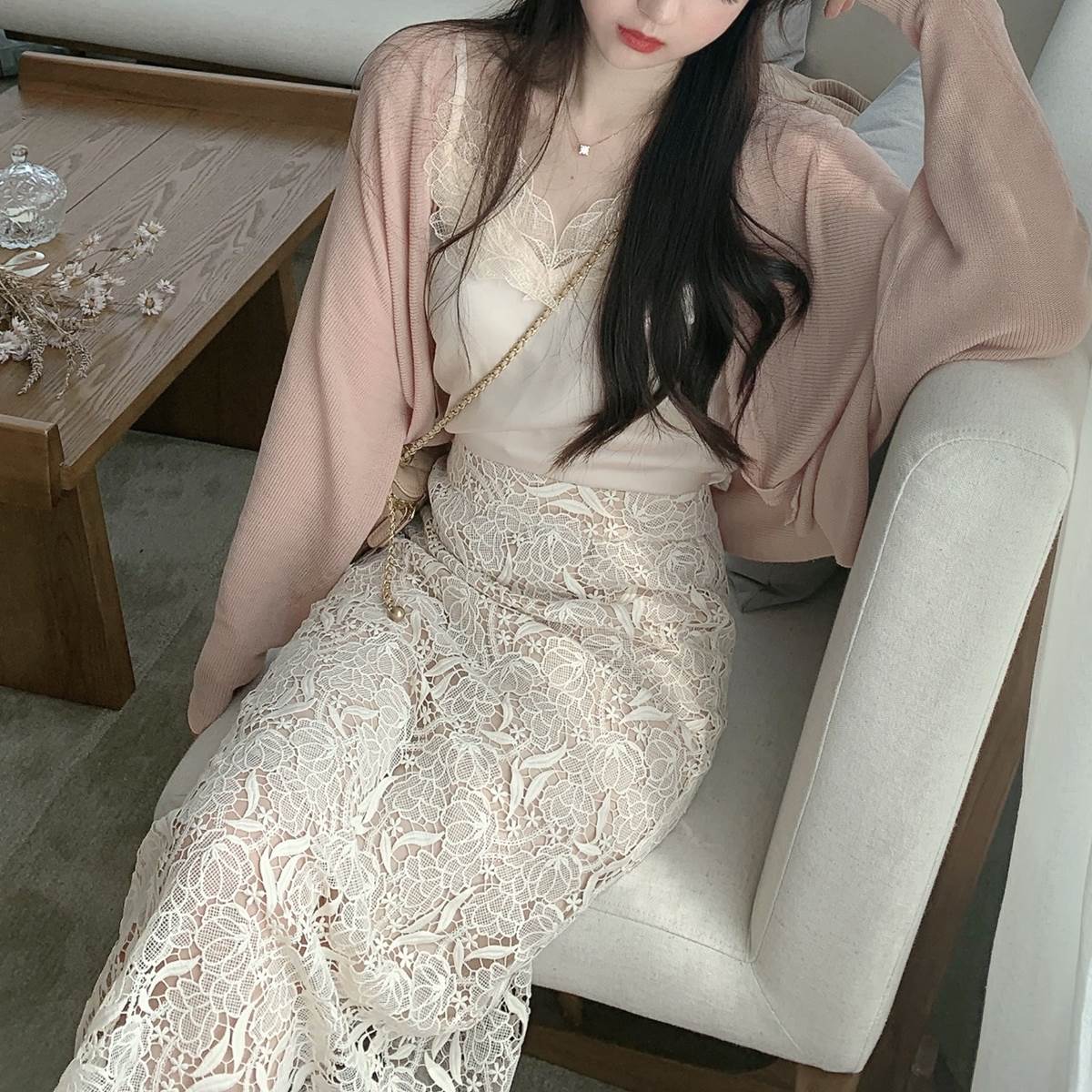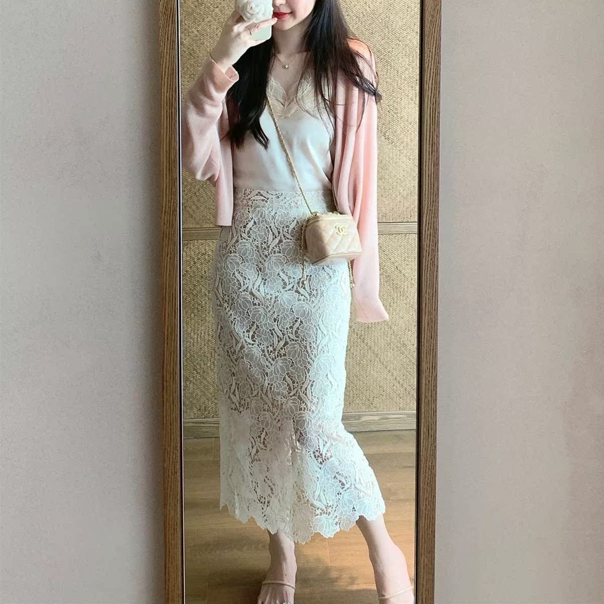 Sexy White Lace Half Body Dress 2022 Summer New Gentleness Wind 100 Lap High Waist Mid-Pack Hip Skirt Nicely