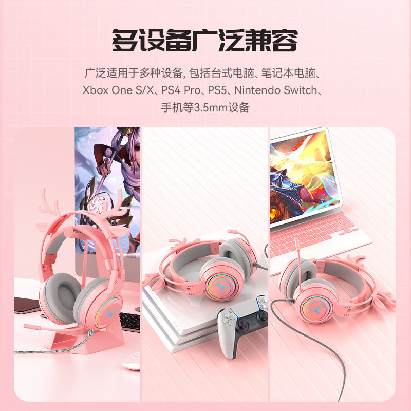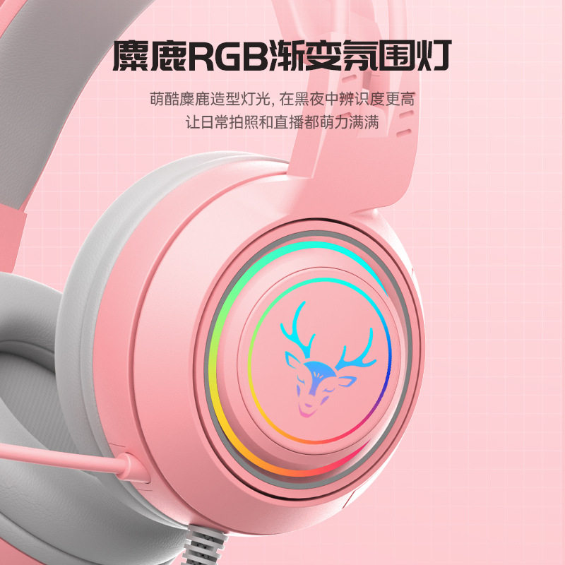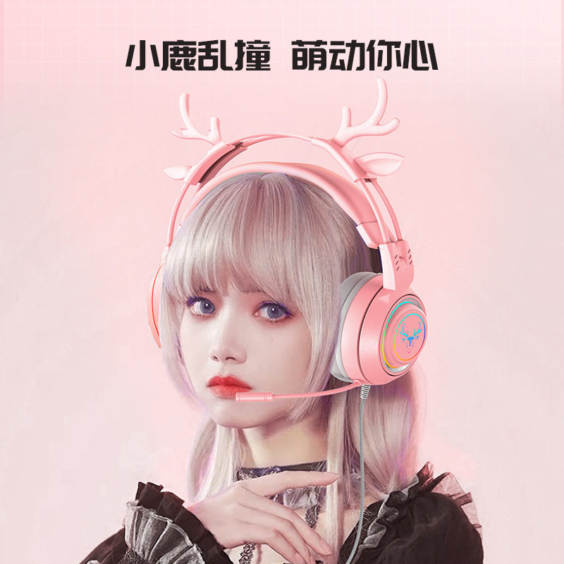 A deer accompanied by a detachable cute cat ear antlers girl bass with a wheat light-emitting head-mounted game headset