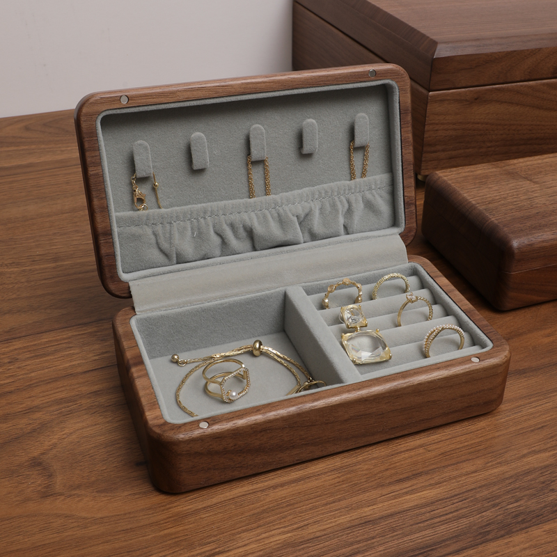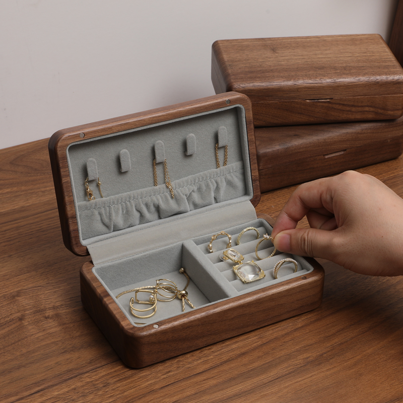 Black walnut solid wood jewelry box storage box quality velvet high-end exquisite high-end jewelry ring earrings hand jewelry box