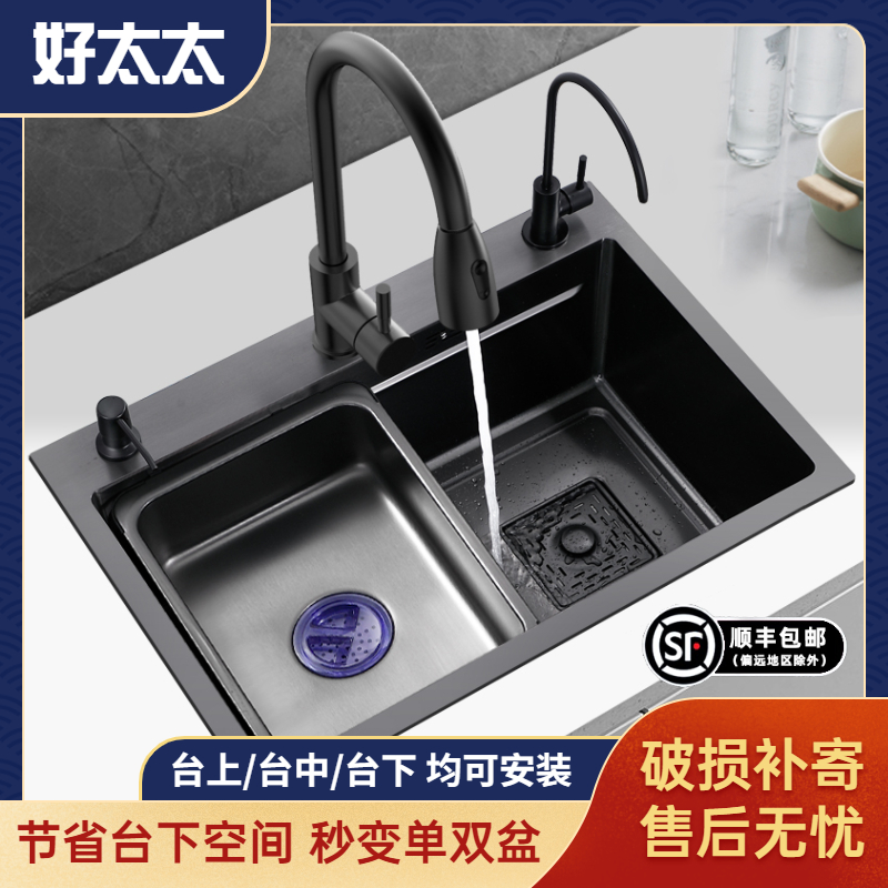 Nano Falls Large Single Groove 304 Stainless Steel Sink Kitchen Domestic Dishwashing Pool Thicken Pelvic Wash Basin-Taobao