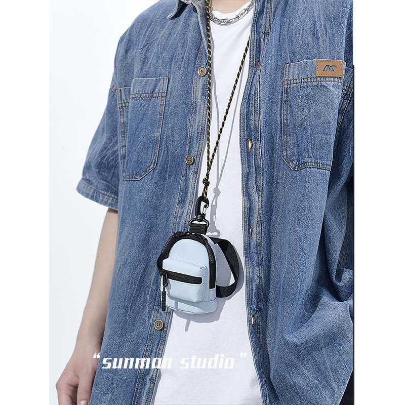 Mini hanging neck bag zero money card bag headphones Bauins personality small satchel key inclined satchel bag men's boobs bag-Taobao