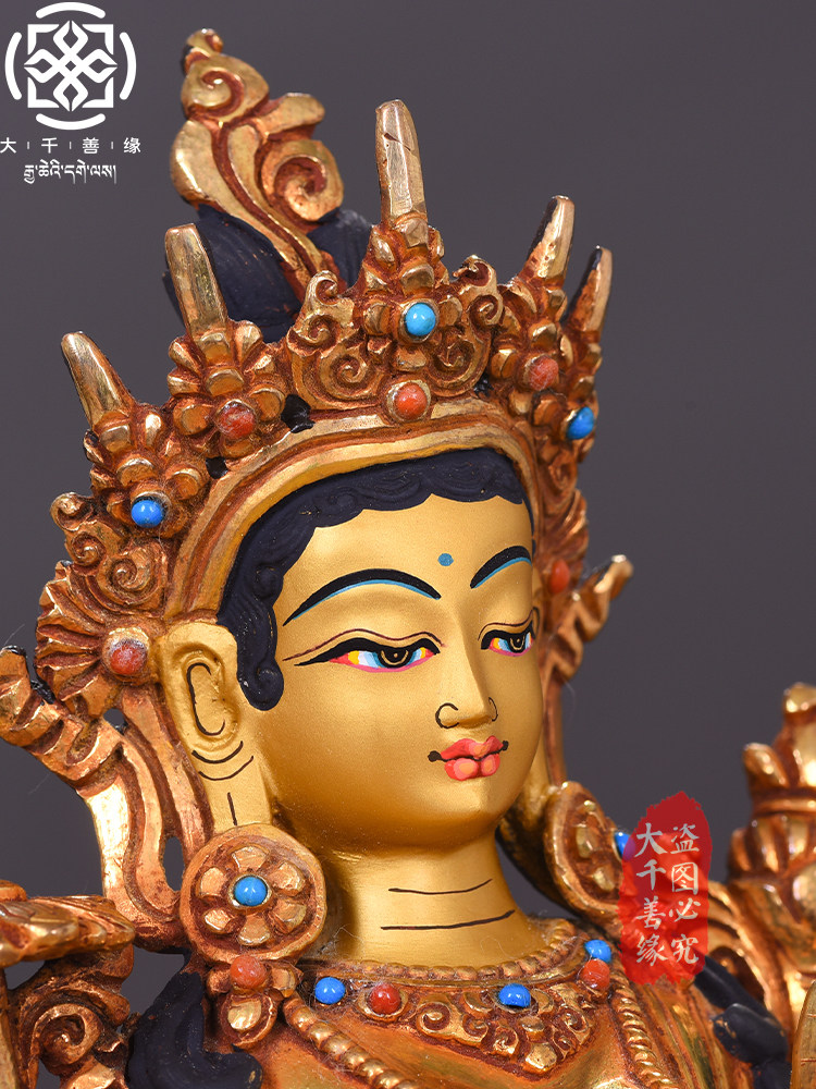 Big Thousand Good Edge Nepal Imports Full Handmade 23cm Green Degree Mother Buddha Stash of Intimate Home Bronze Statue Pendulum