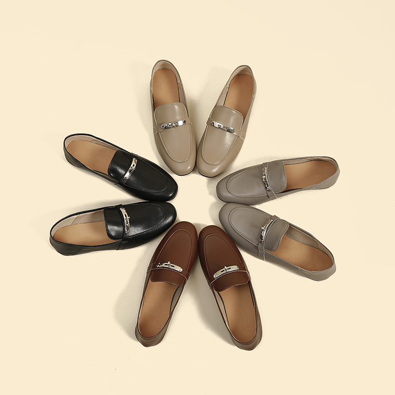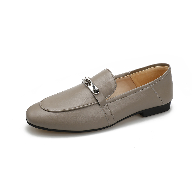 Lefu shoes and summer girl 2023 new leather shallow sheep leather mesh flat single shoes tender retro soy bean shoes step on heel