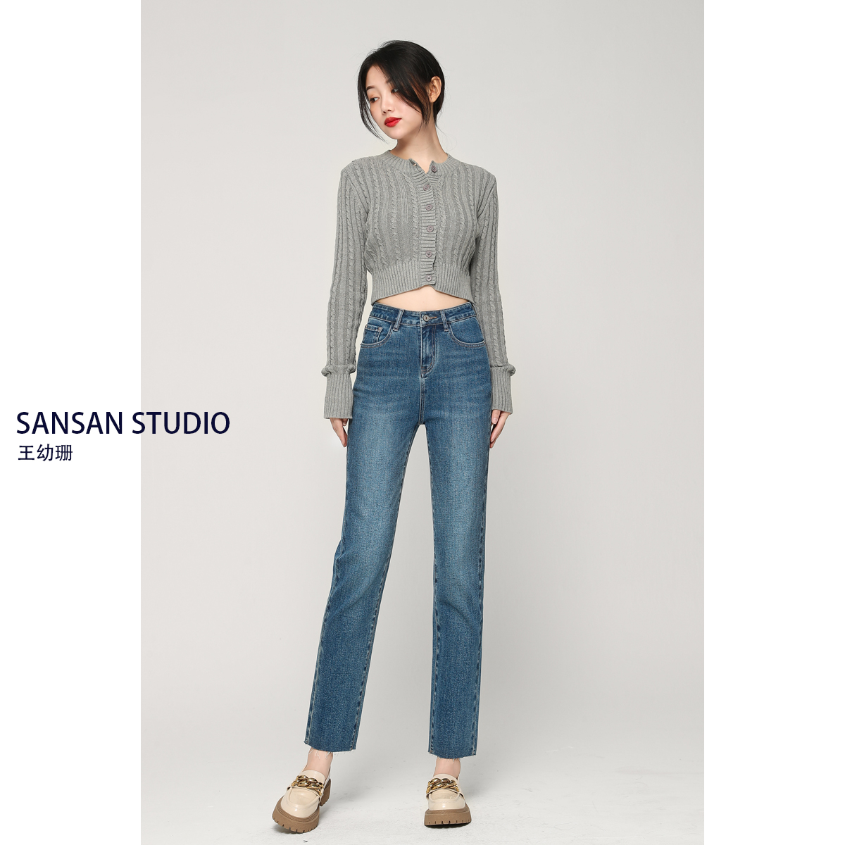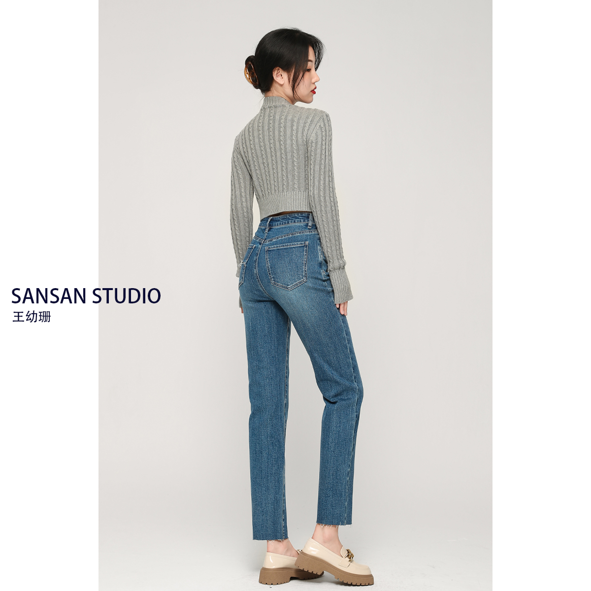 Wang Youshan straight jeans women's high waist nine points 2022 autumn and winter new women's clothing small cigarette pants cut