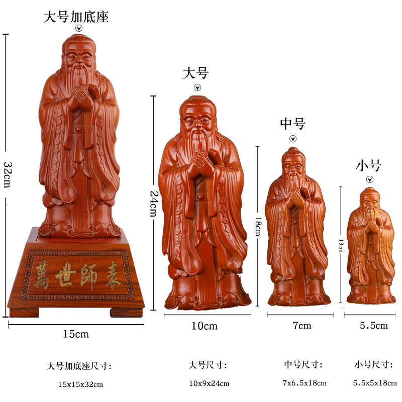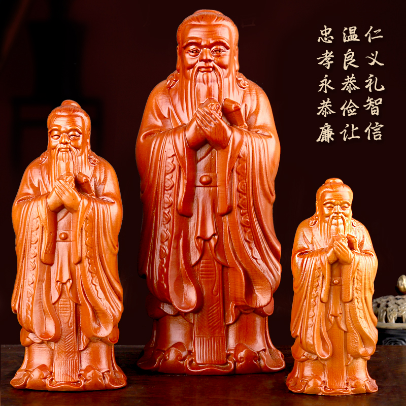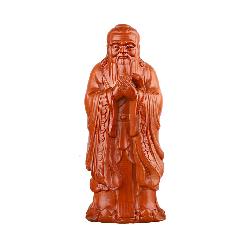 Small number of peach wood Confucius like the middle number Peach Wood Confucius Statue of the Great Peach Wood Confucius Statue with a pedestal Confucius statue