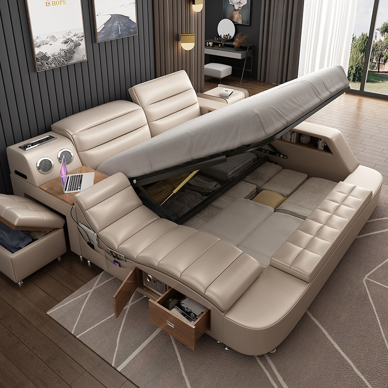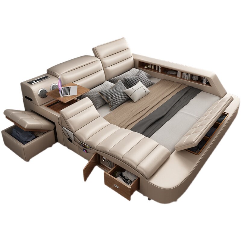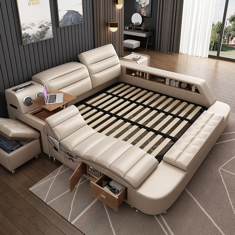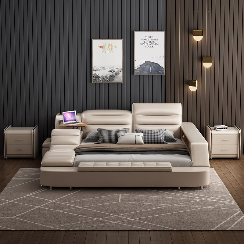 European style tatami bed Modern simple intelligent massage bed headlayer leather bed double bed 1.8 meters wedding bed master bedroom