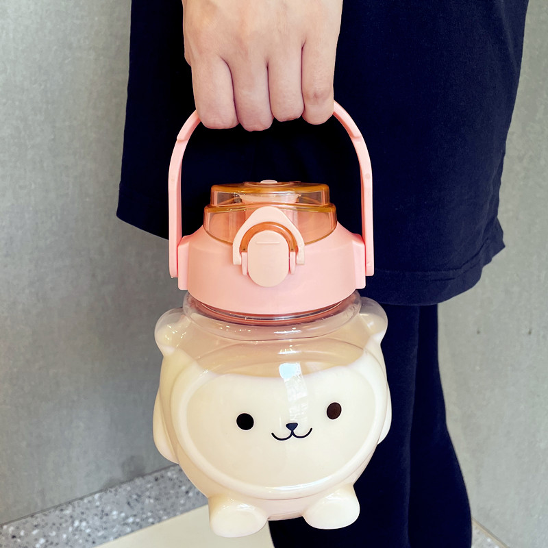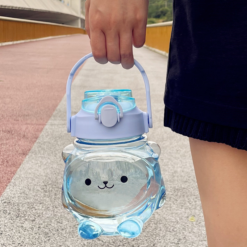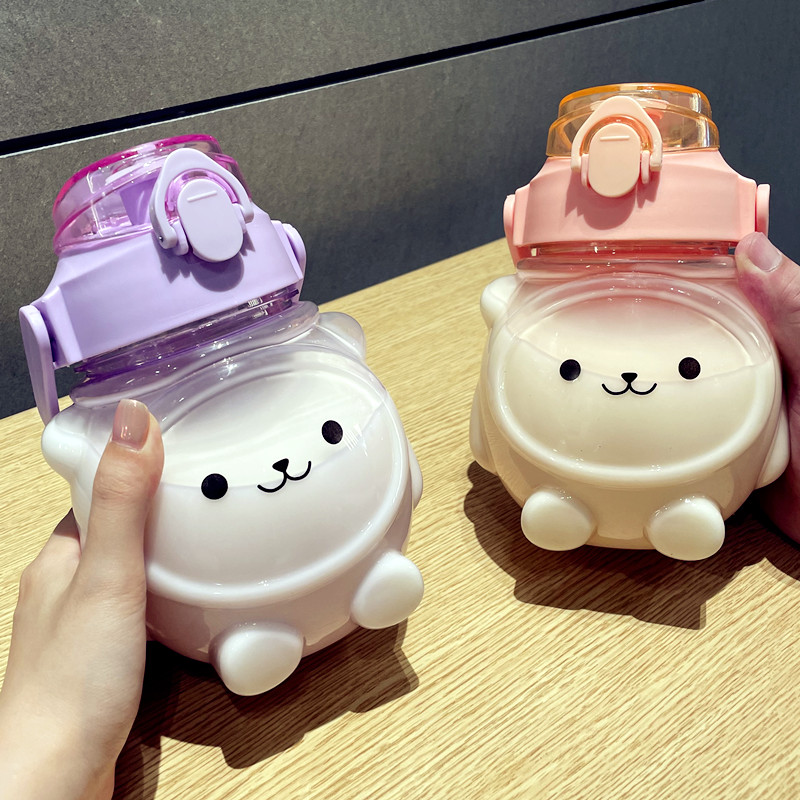 Large-capacity bear plastic straw water cup for children ins summer cute anti-fall high-value student water bottle portable
