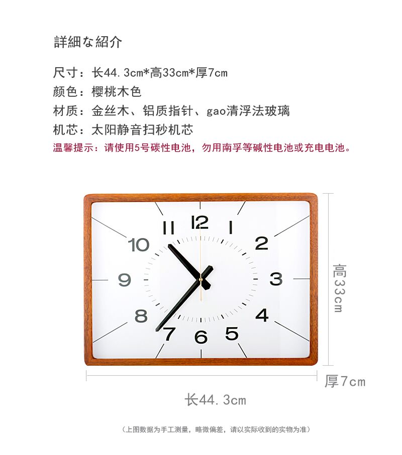 Japan-style solid wood rectangular hanging clock living room home minimalist clocks atmospheric retro quartz clock silent clock-Taobao