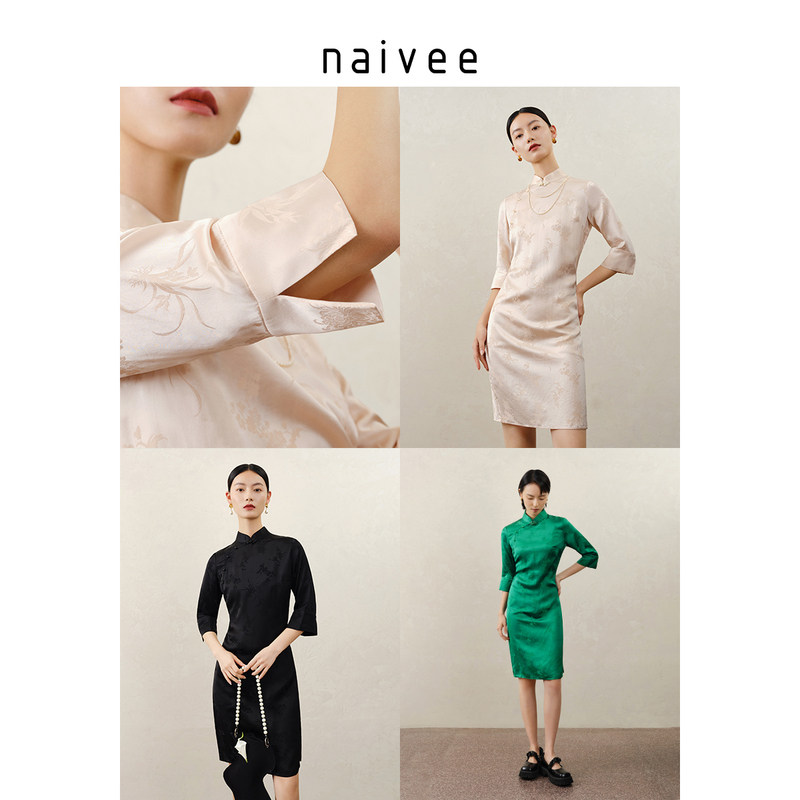 navee nav 22 spring summer new Chinese style country wind satin acetate jacquard foreign dress improvement qipao