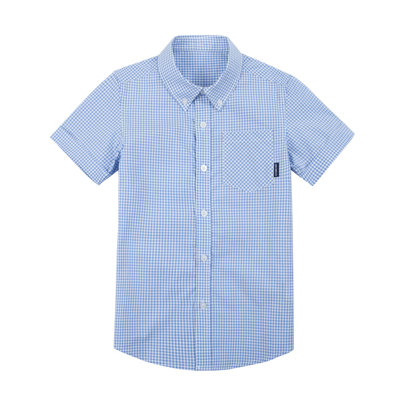 Eaton Gide elementary school uniform boys light blue square plate short sleeve shirt summer shirt 16C 102