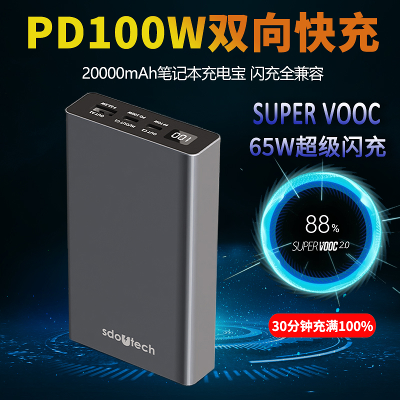 There are two-way PD100W fast charging notebook mobile charging suitable for oppo65W OnePlus 80W super flash charging Huawei Samsung PPS45W flashable firmware upgrade high-power mobile power supply