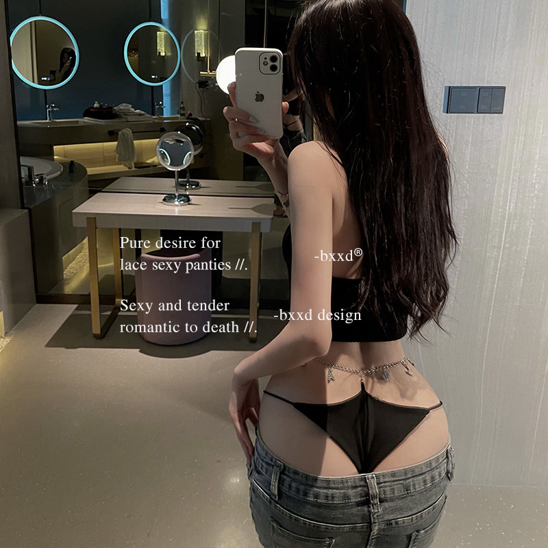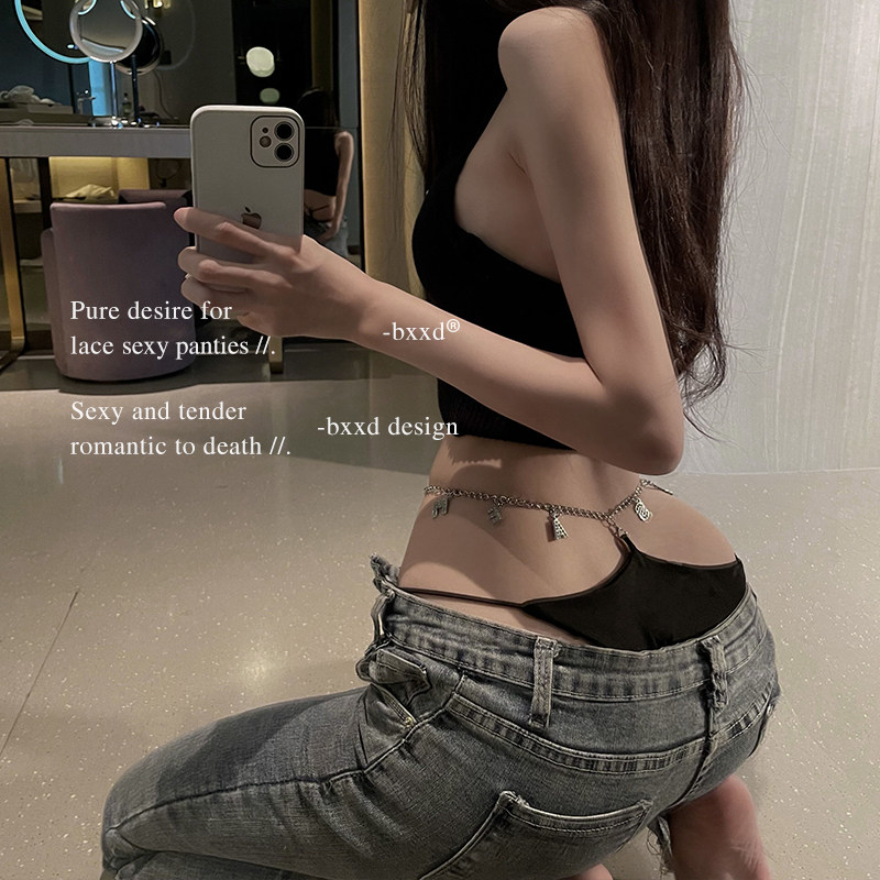 "American Hot Sister" No marks High waist Underpants Women Summer Sexy European and American letters Metal chain Fire Spicy Triangle Pants-Taobao