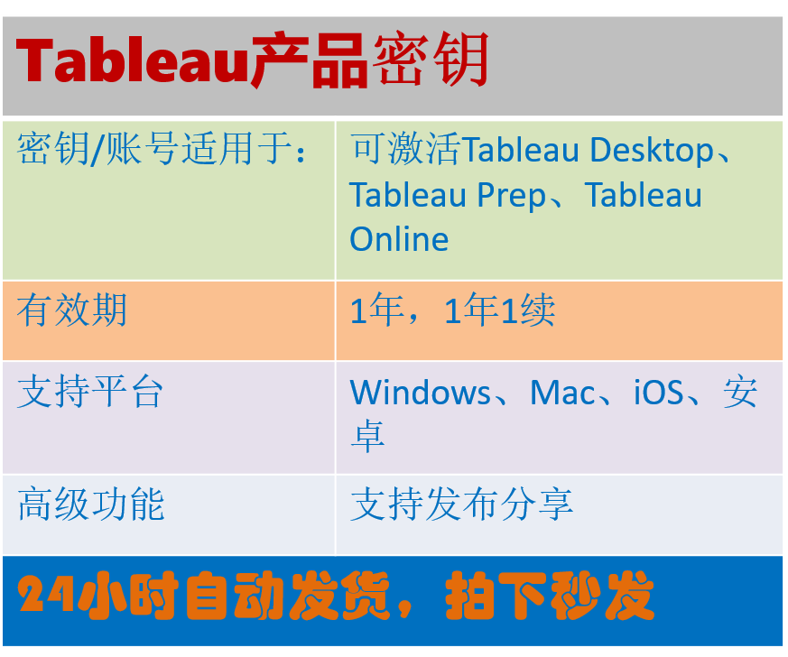 24h Automatic shipping-Professional version Tableau activation code Key Tableau Online account delivery tutorial-Taobao